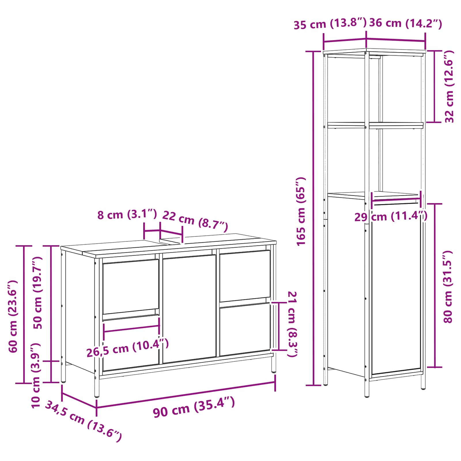 Set de mobilier pentru baie cu ușă 2 pcs Stejar afumat și negru GartenMobel Dekor