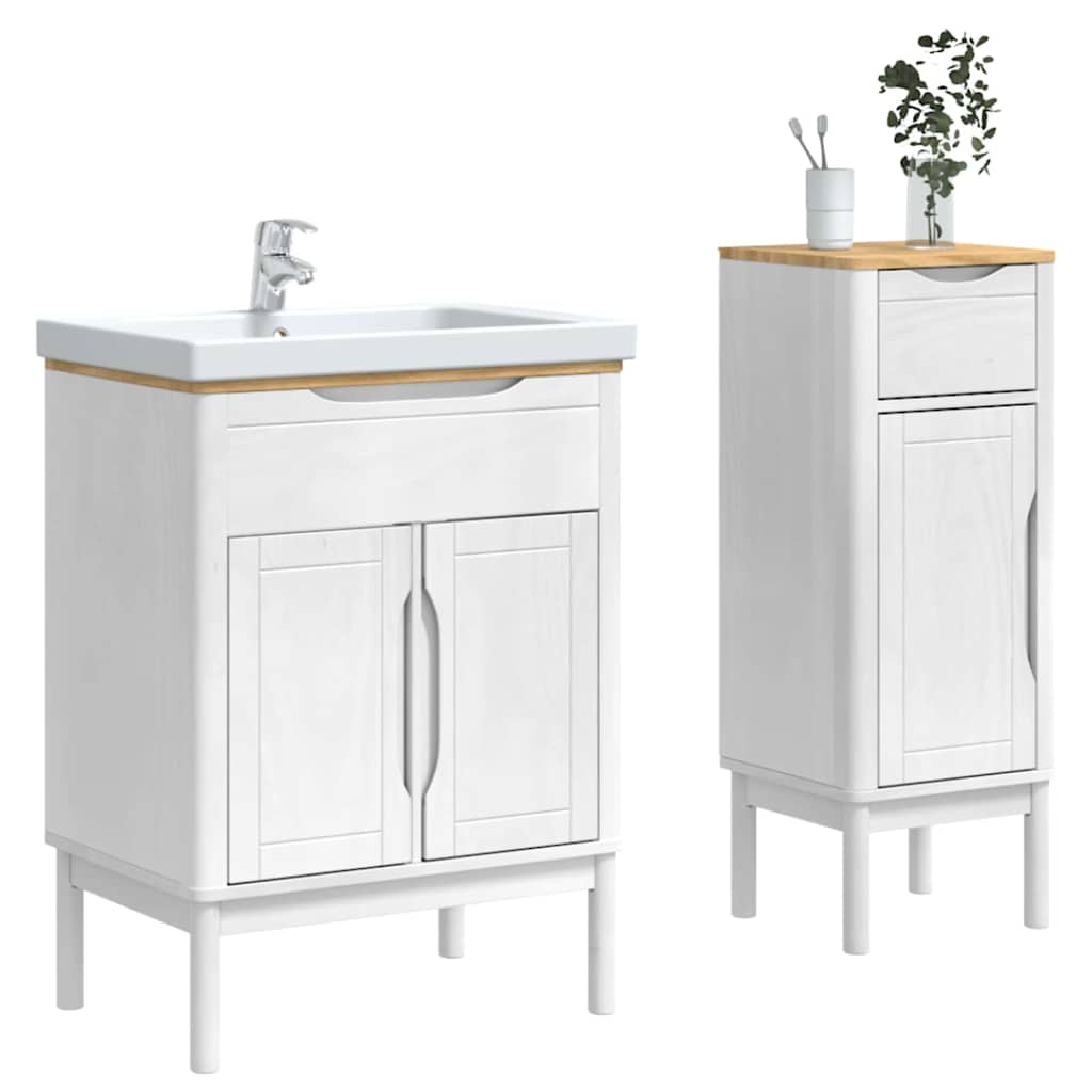 Set de mobilier pentru baie FLORO 2 pcs Alb Lemn de pin masiv GartenMobel Dekor
