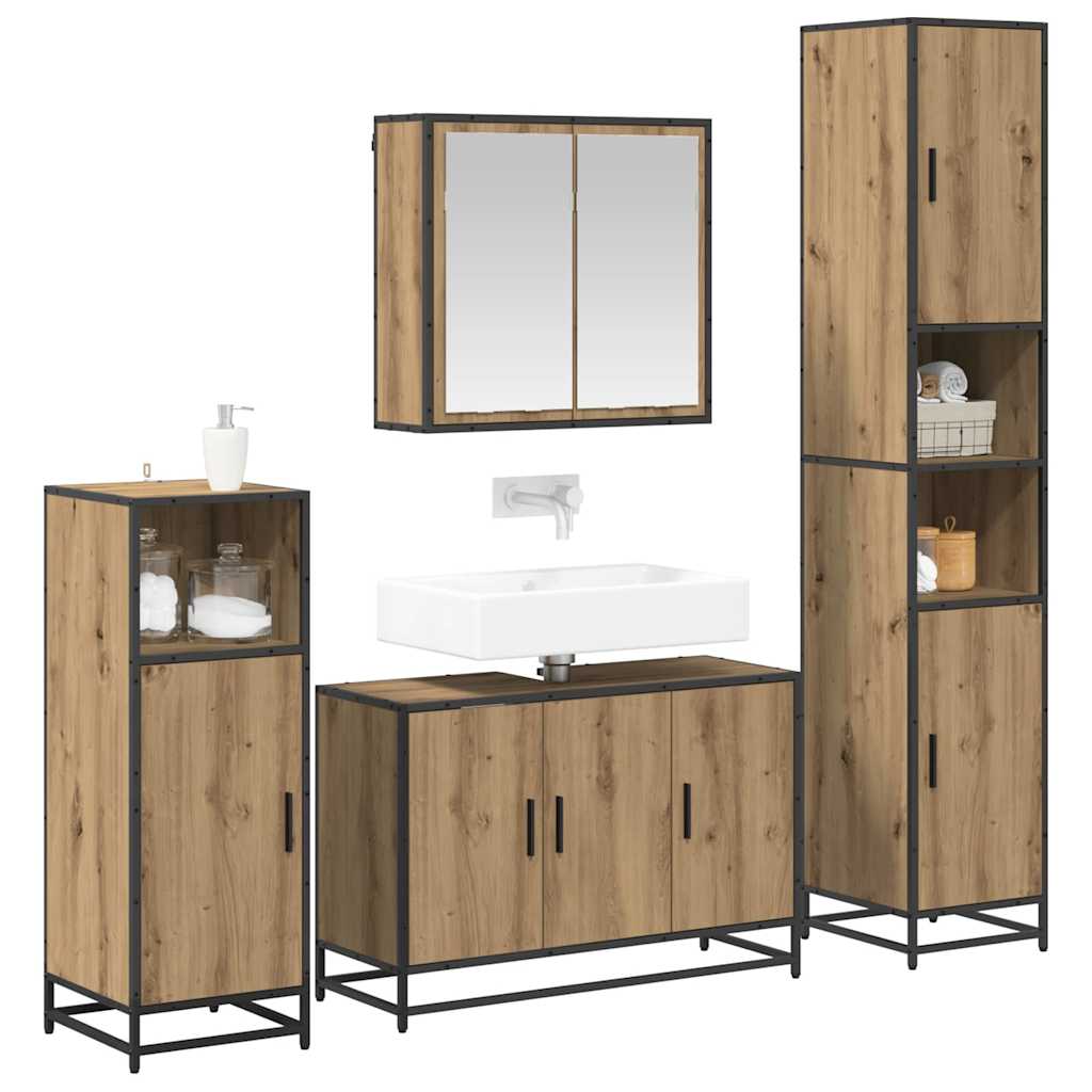 Set de mobilier pentru baie Pe perete 4 pcs stejar artizanal GartenMobel Dekor