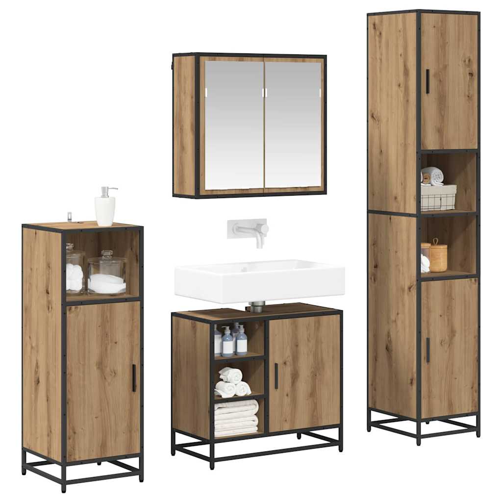 Set de mobilier pentru baie Pe perete 4 pcs stejar artizanal GartenMobel Dekor