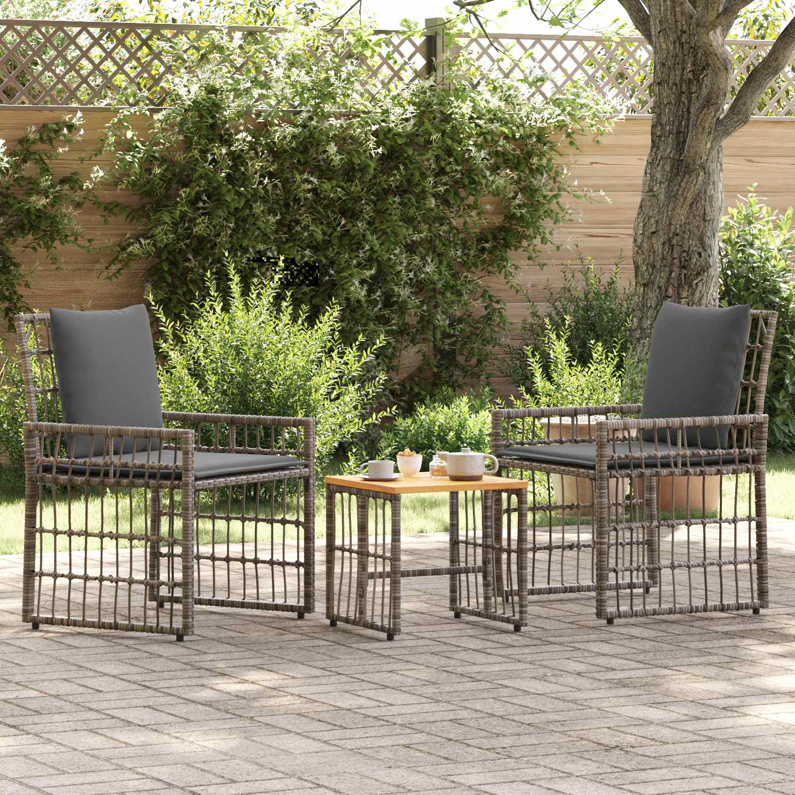 Set de Mobilier pentru Exterior 3 pcs Gri și gri închis GartenMobel Dekor