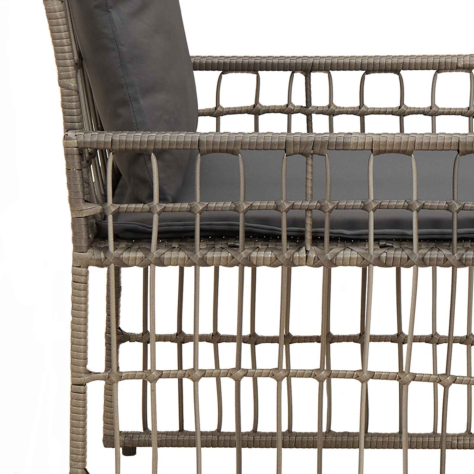 - Perne incluse: Scaunele și taburetele vin cu perne din poliester pentru extra confort. Tot designul are spătare și cotieră integrate, oferind o opțiune de ședere practică pentru terase, balcoane sau grădină.