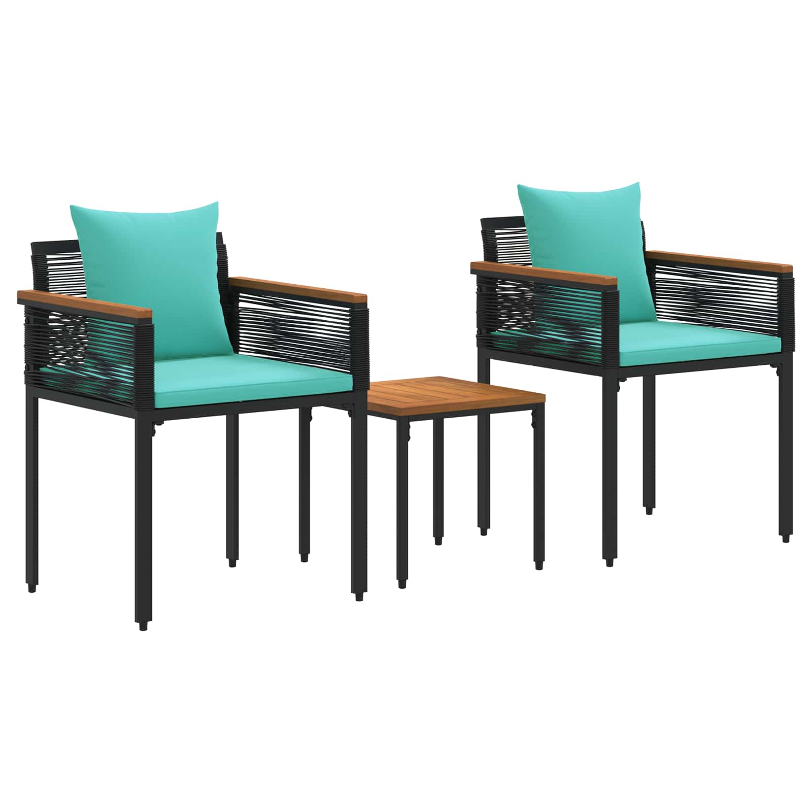 Set de Mobilier pentru Exterior 3 pcs Negru și Turcoaz Ratan PE GartenMobel Dekor