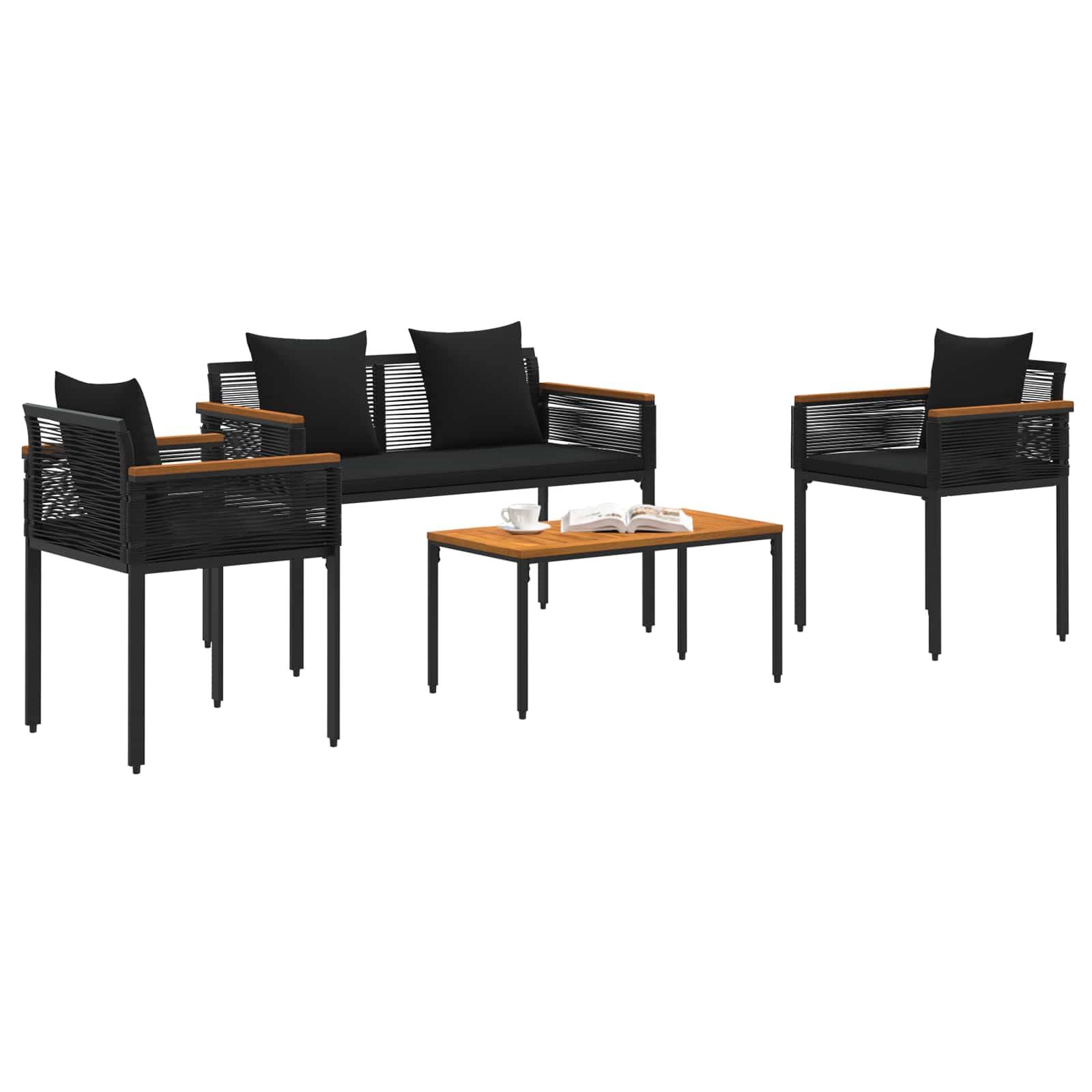 Set de Mobilier pentru Exterior cu pernă 4 pcs Negru Ratan PE GartenMobel Dekor