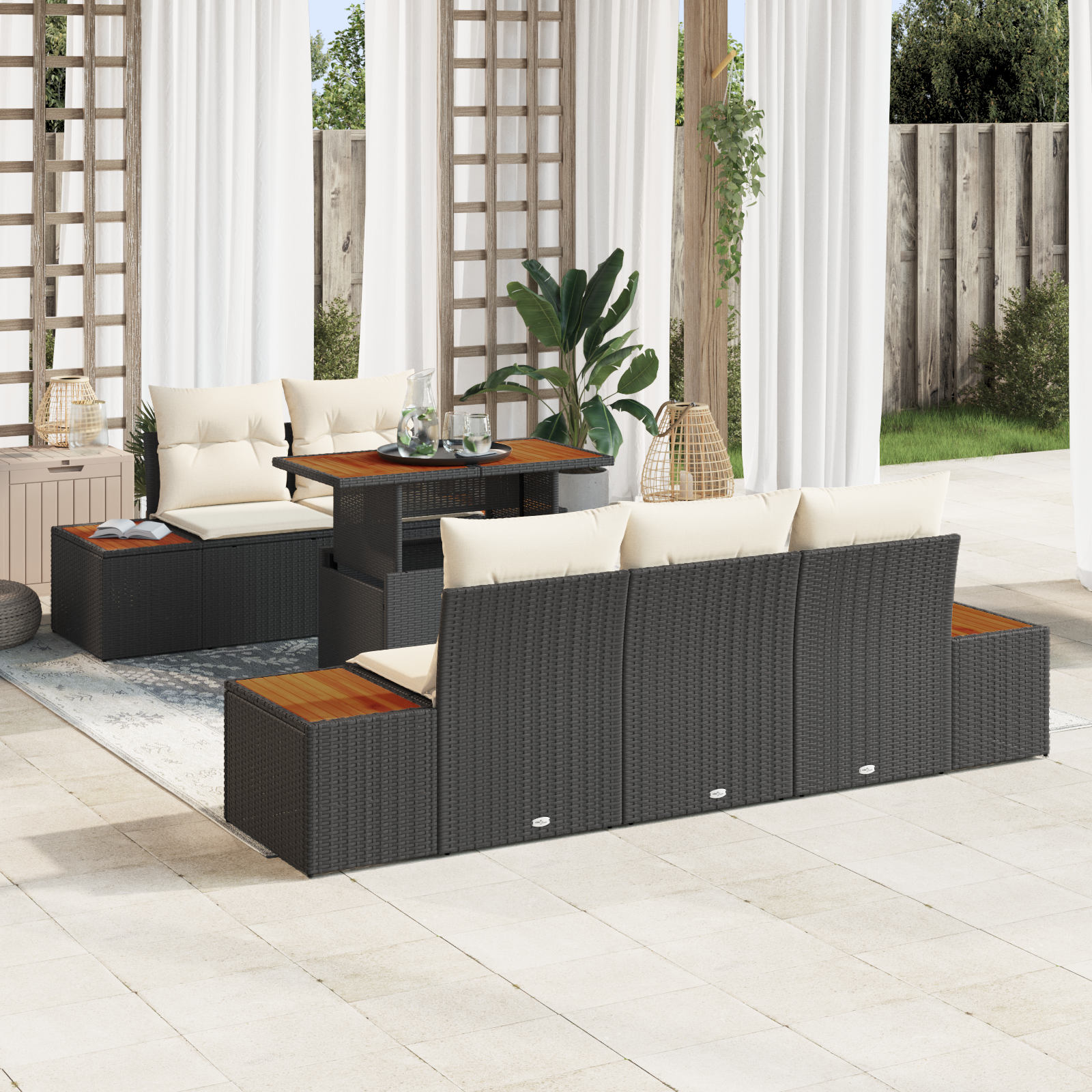 Set de Sofa 6 Piese cu Perne în Ratan Poli Negru GartenMobel Dekor