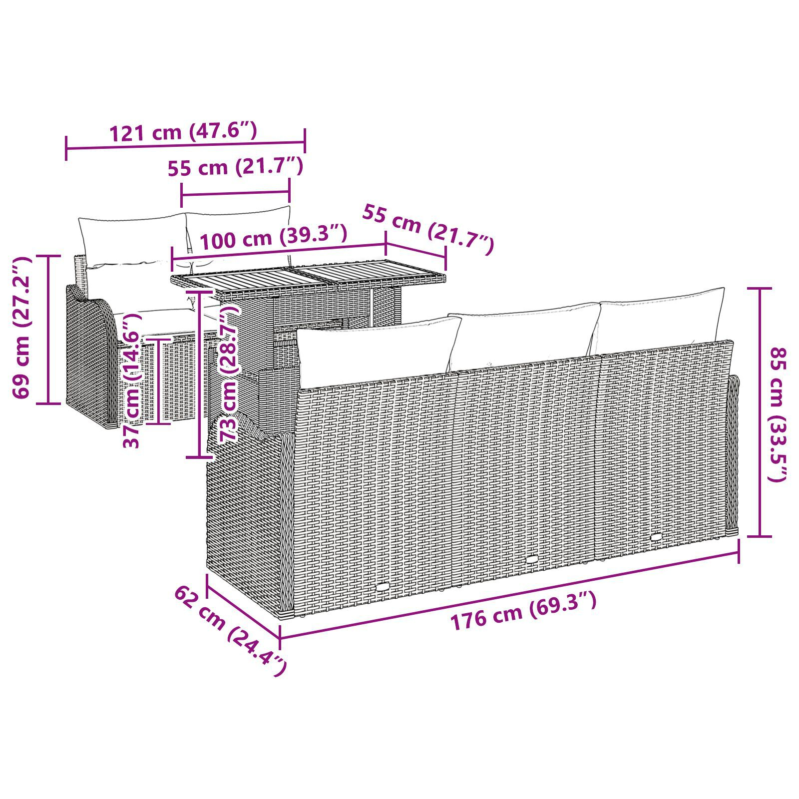 Setul ăsta de sofa pentru grădină îmbină stilul cu confortul modern, perfect pentru întâlniri și mese afară. Poți să-l rearanjezi ușor, fiind ideal pentru terasă, balcon sau grădină.