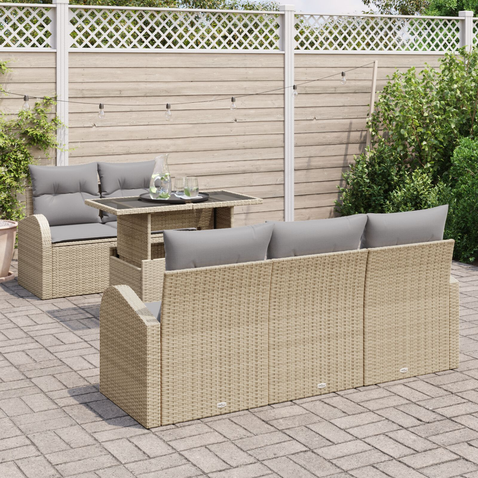 Set de Sofa de Grădină 6 Piese cu Perne Bej din Ratan Poliester, Sofa de Grădină pentru 2 Persoane cu Spațiu de Depozitare și Perne Bej din Ratan Poliester GartenMobel Dekor