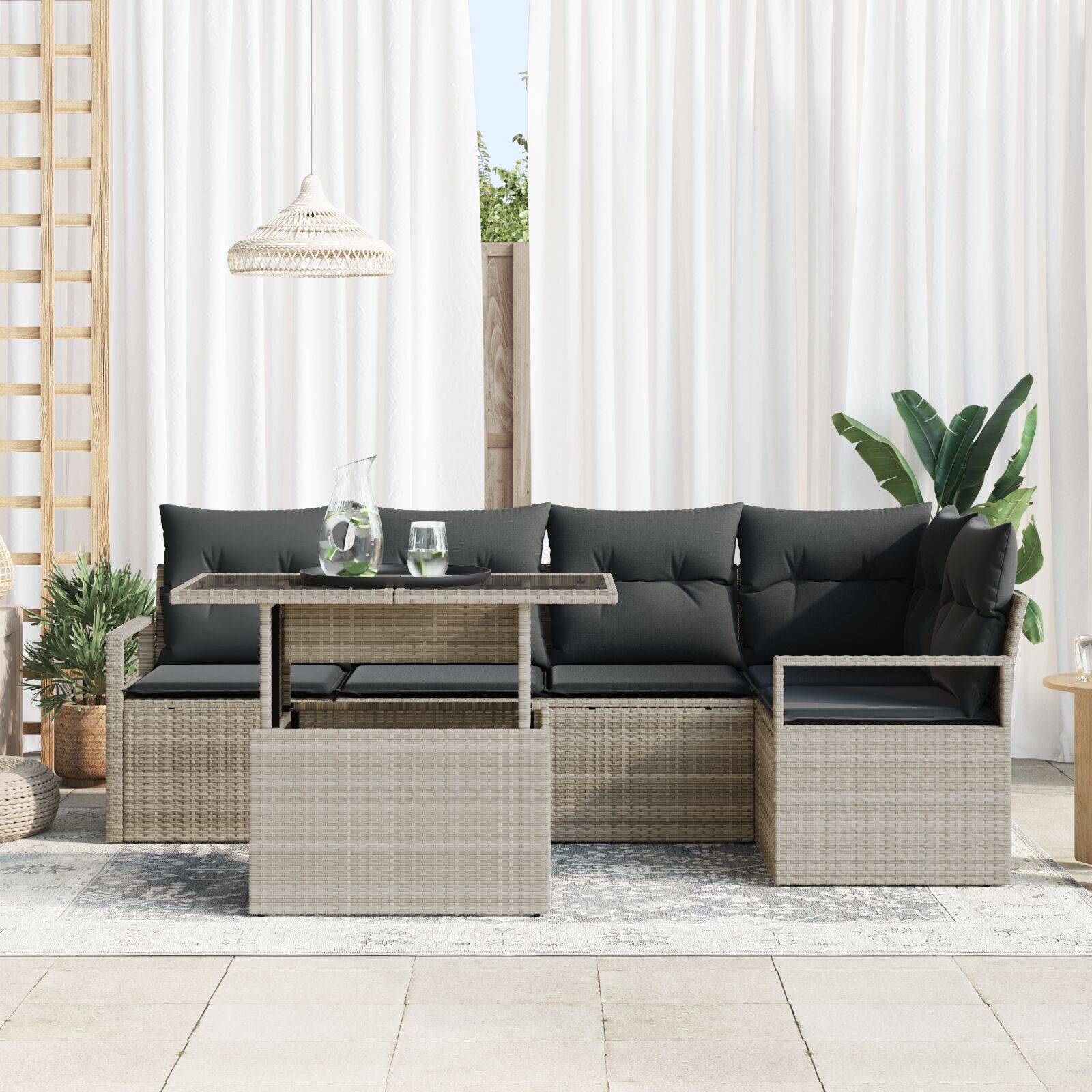 Set de Sofa de Grădină 6 Piese cu Perne Gri Deschis Ratan Polimeric, Sofa de Grădină cu 2 Locuri cu Spațiu de Stocare și Perne Gri Polimeric GartenMobel Dekor