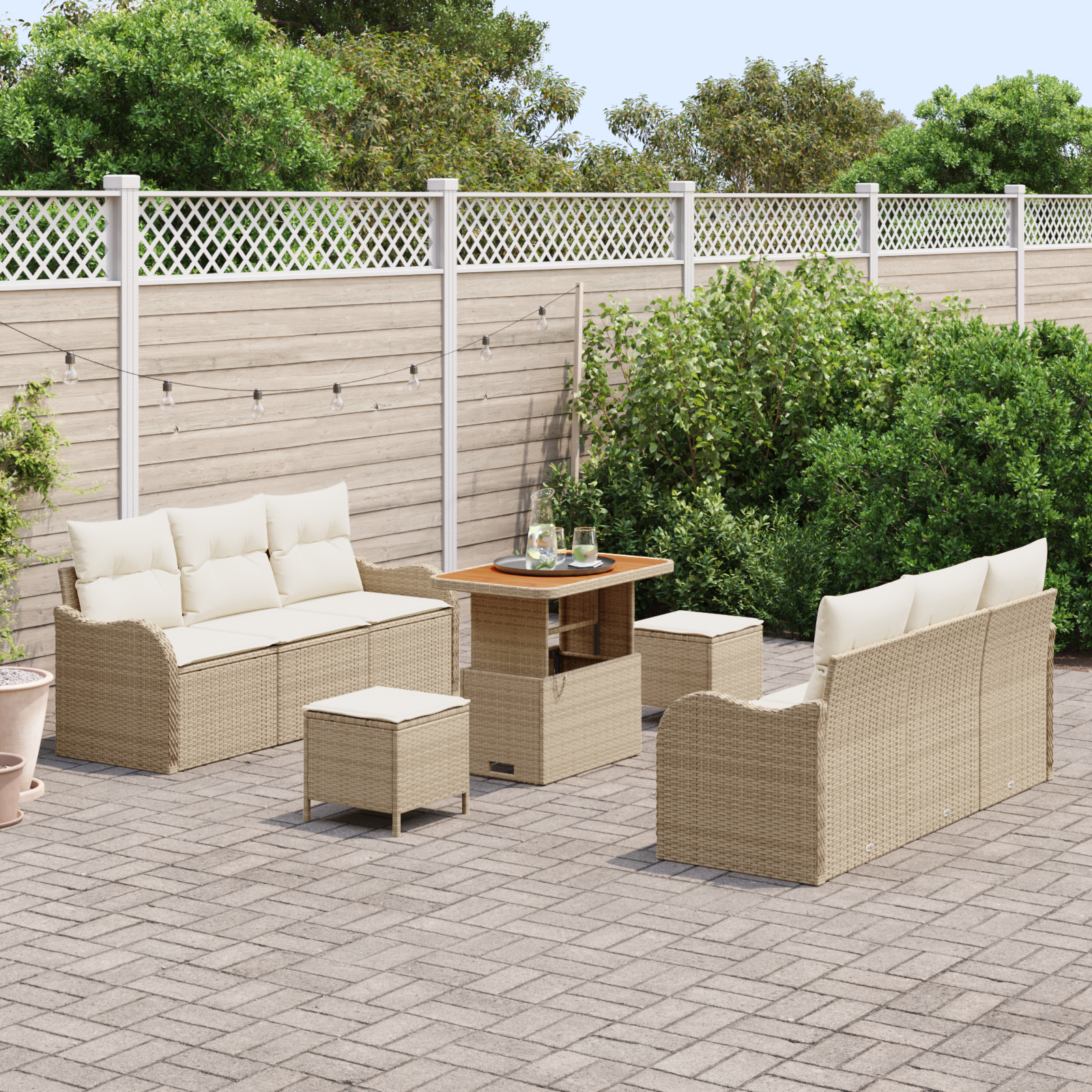 Set de sofa de grădină cu 9 piese și perne bej din poliratan Acacia GartenMobel Dekor