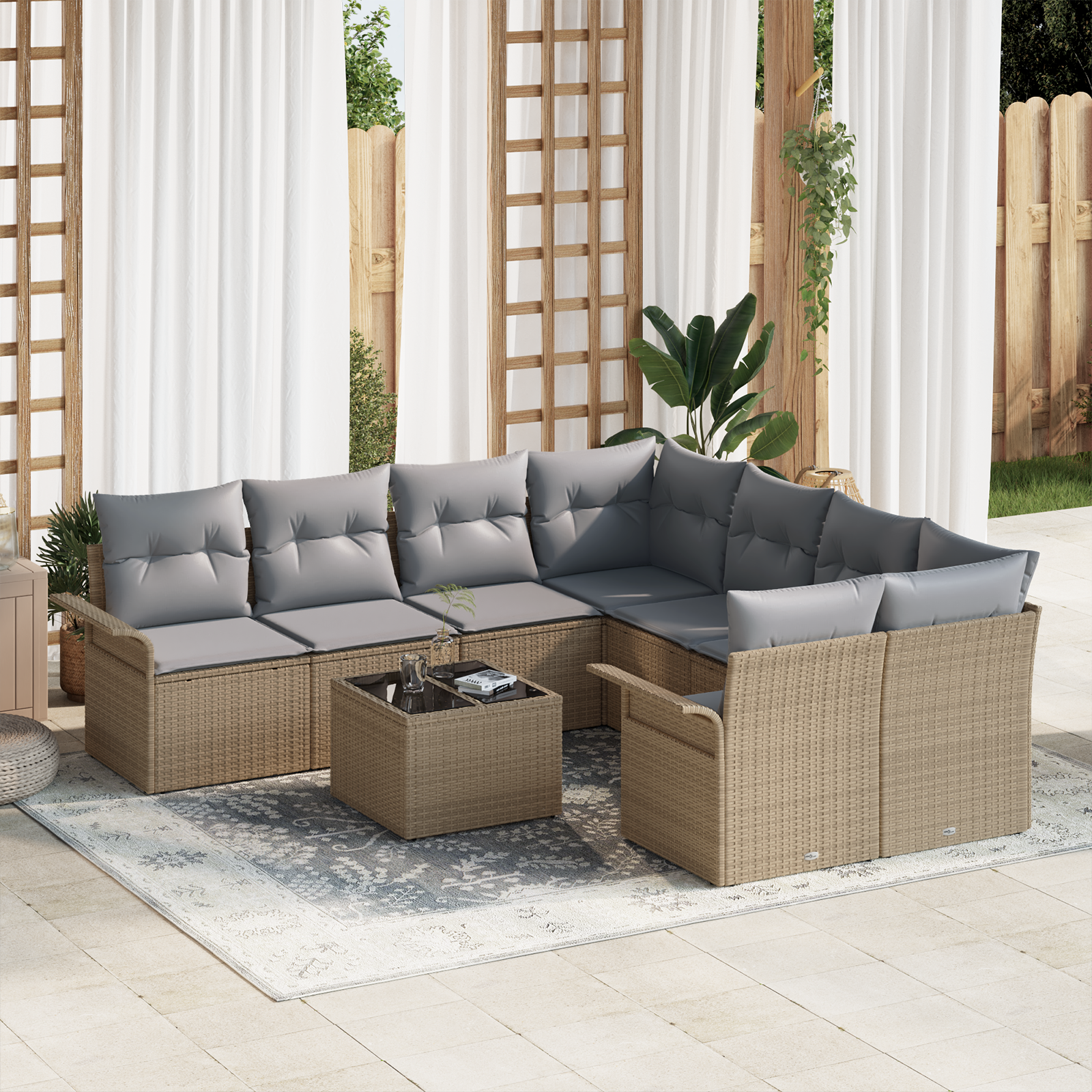 Descriere Set Sofa Grădină Perne Bej Poliratan