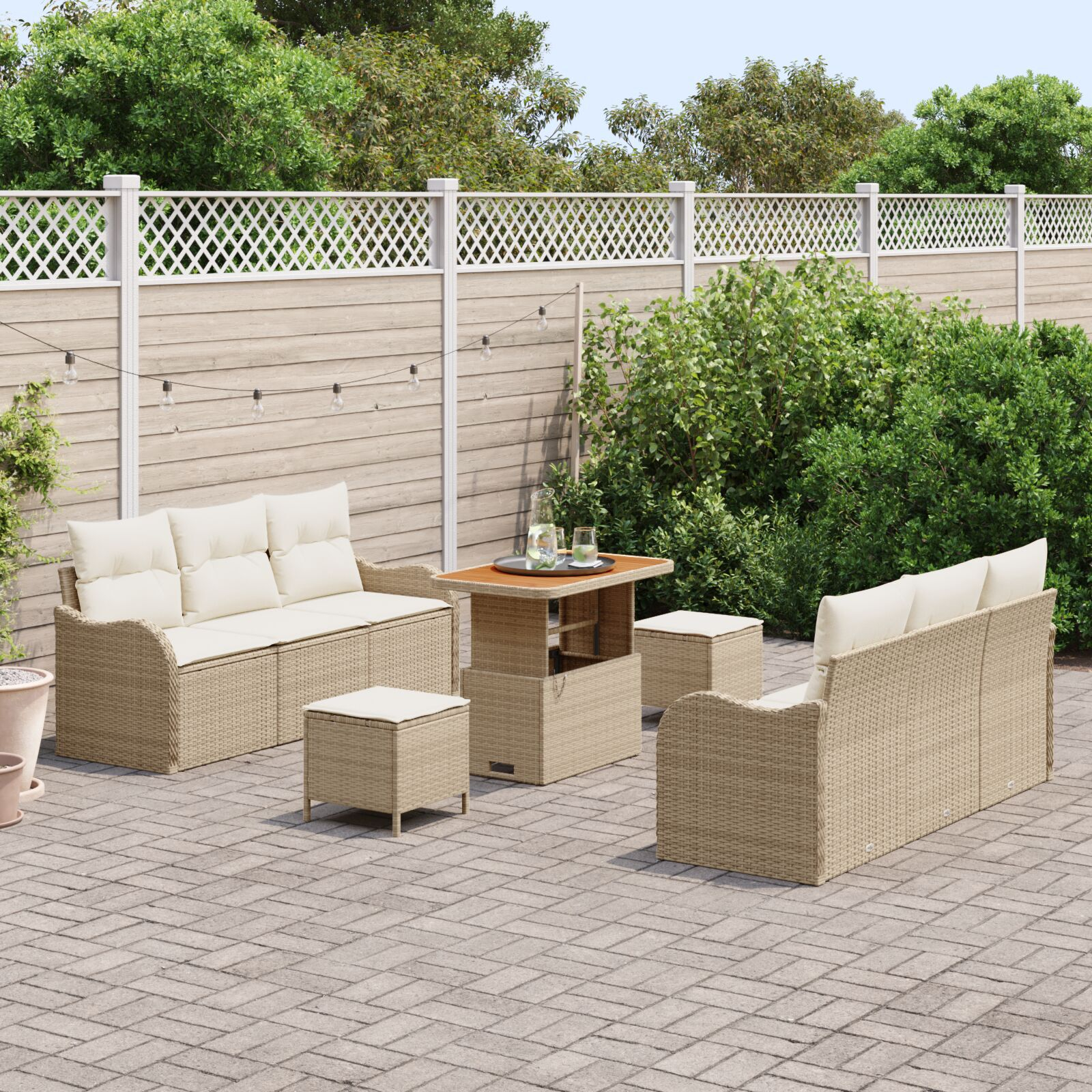 Set de sofa de grădină cu perne Bej Ratan Poliester Acacia - 9 Piese, Sofa de grădină cu 2 locuri și perne Bej Ratan Poliester, Set de dining de grădină cu 3 piese și perne Bej Ratan Poliester Acacia GartenMobel Dekor