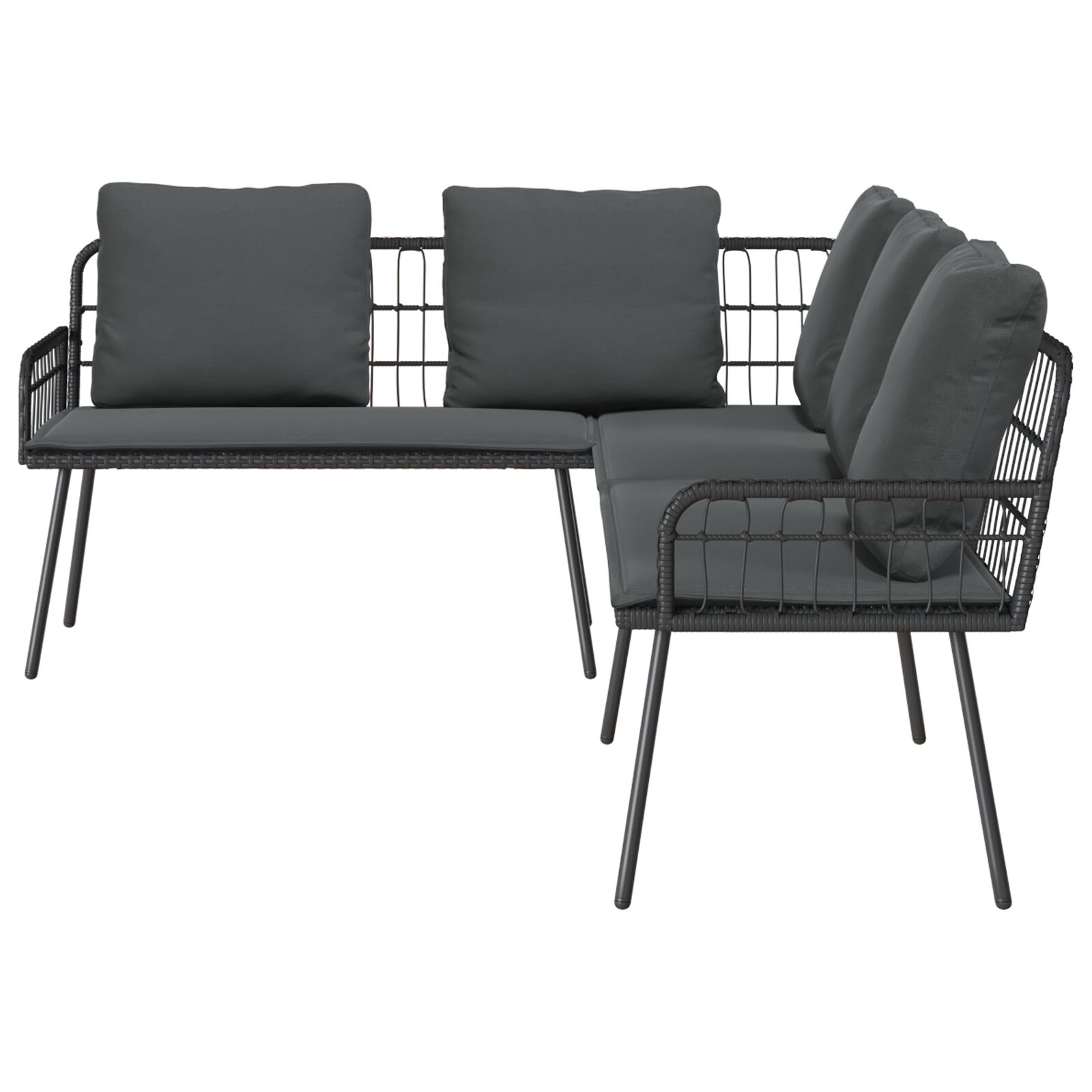 - Construcție durabilă: Setul de sofa de grădină e fabricat din materiale de calitate, asigurând durabilitate pe afară. Are un cadru solid din oțel și locuri din poliratan sintetic confortabile, fiind elegant și robust.