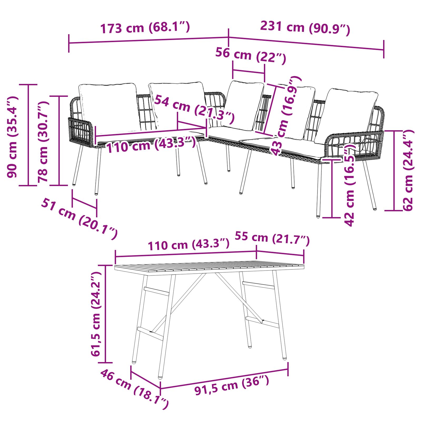 - Dimensiuni: 173 x 231 x 78 cm (l x ad x î)