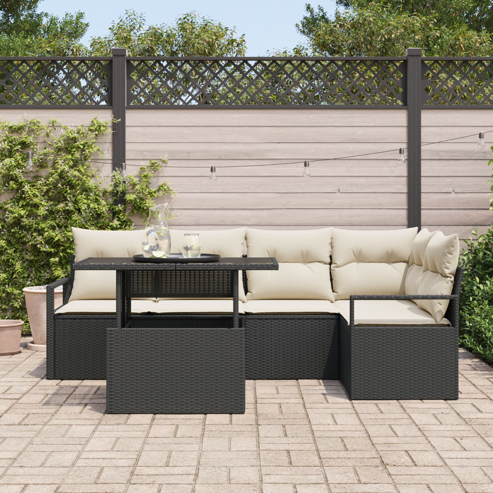 Set de Sofa de Grădină de 6 Piese cu Perne Ratan Negru, Sofa de Grădină de 2 Locuri cu Spațiu de Depozitare și Perne Ratan Negru GartenMobel Dekor