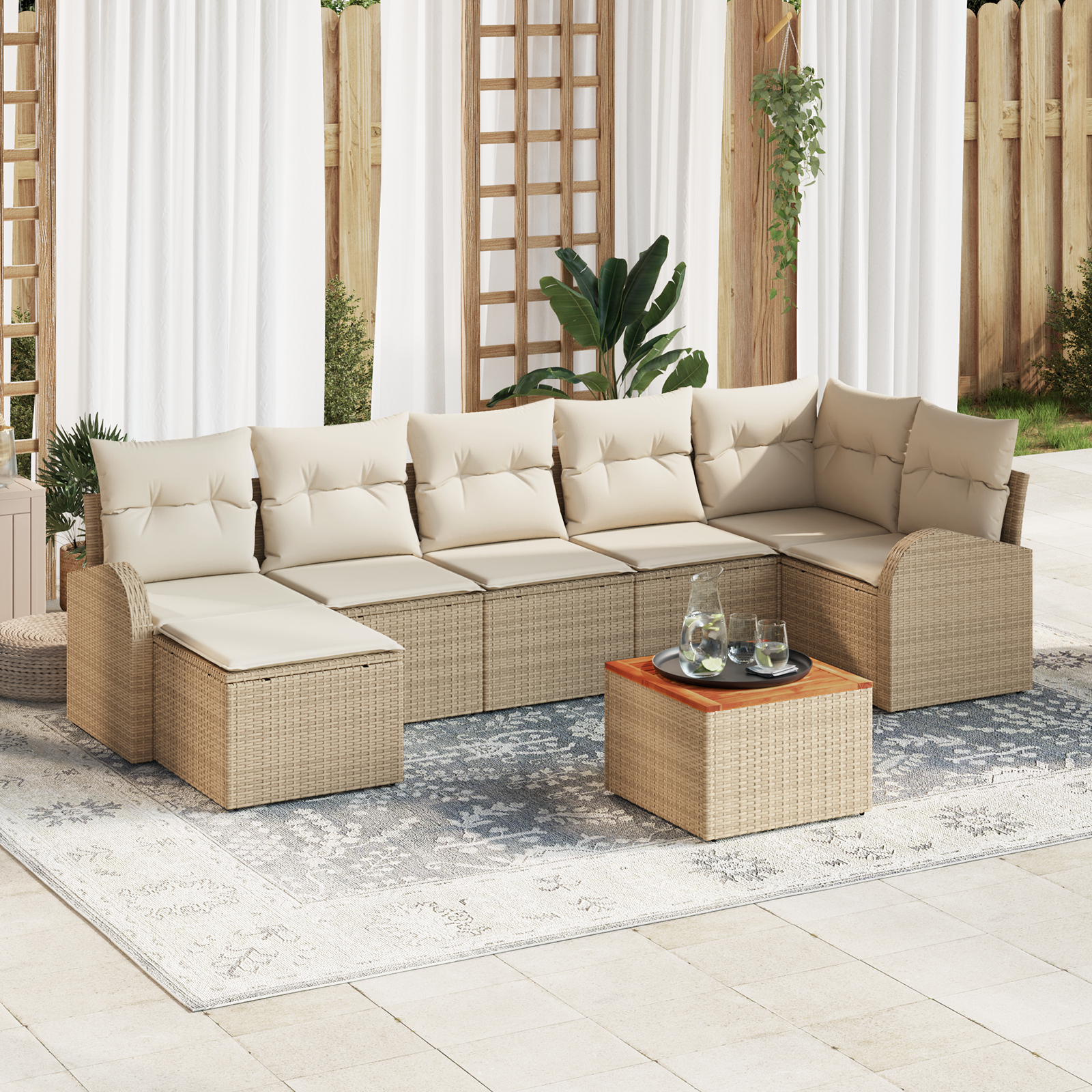 Set de sofa pentru grădină 8 piese cu perne Bej Ratan poli Acacia, Sofa de grădină pentru 2 persoane cu depozitare și perne Bej Ratan poli GartenMobel Dekor