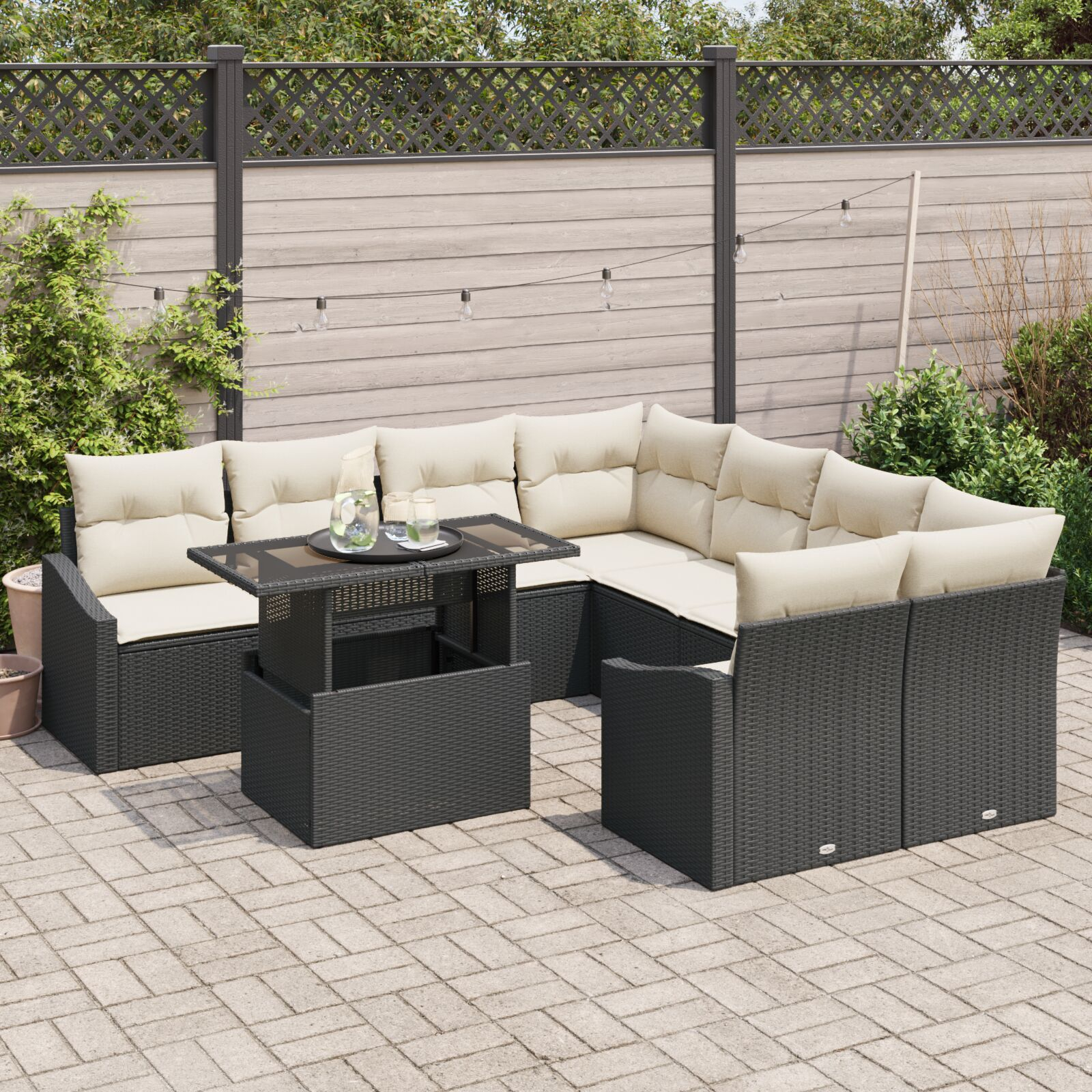 Set de sofa pentru grădină din 9 piese cu perne Negru Poliratan GartenMobel Dekor