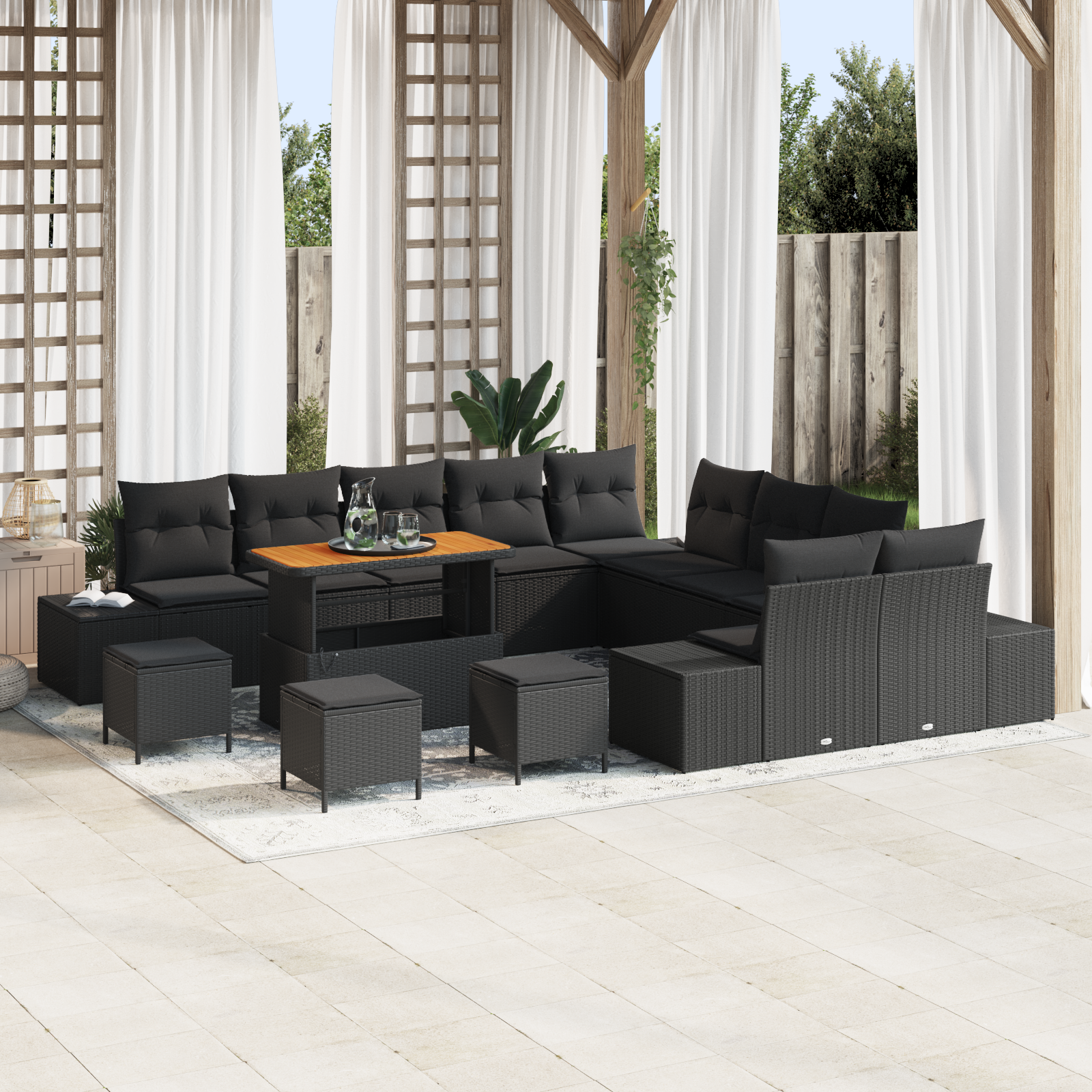 Set de Soferă pentru Grădină , 14 Piese cu Perne, Poliratan Negru, Acacia, Sofa de Grădină cu 2 Locuri, cu Spațiu de Depozitare și Perne, Poliratan Negru, Set de Dining pentru Grădină, 4 Piese, cu Perne, Poliratan Negru, Acacia GartenMobel Dekor