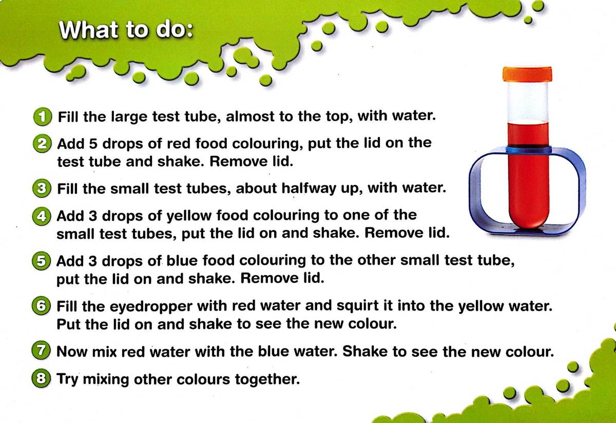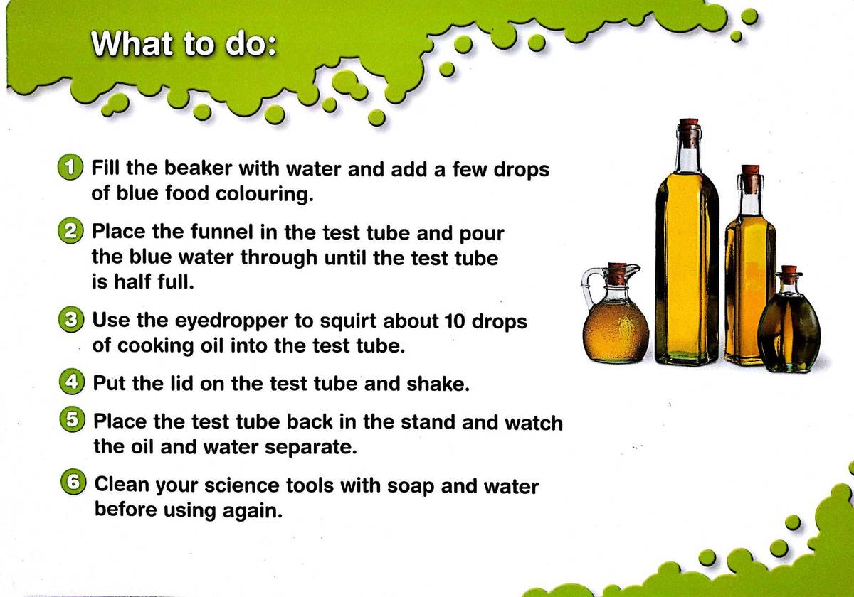 Utilizare: Copiii pot urma instructiunile de pe cele 10 carduri de experimente sau pot crea propriile activitati simple, folosind accesoriile din set. Este un excelent laborator de stiinta pentru copii pentru initierea in descoperirea fenomenelor simple, sub supravegherea unui adult.