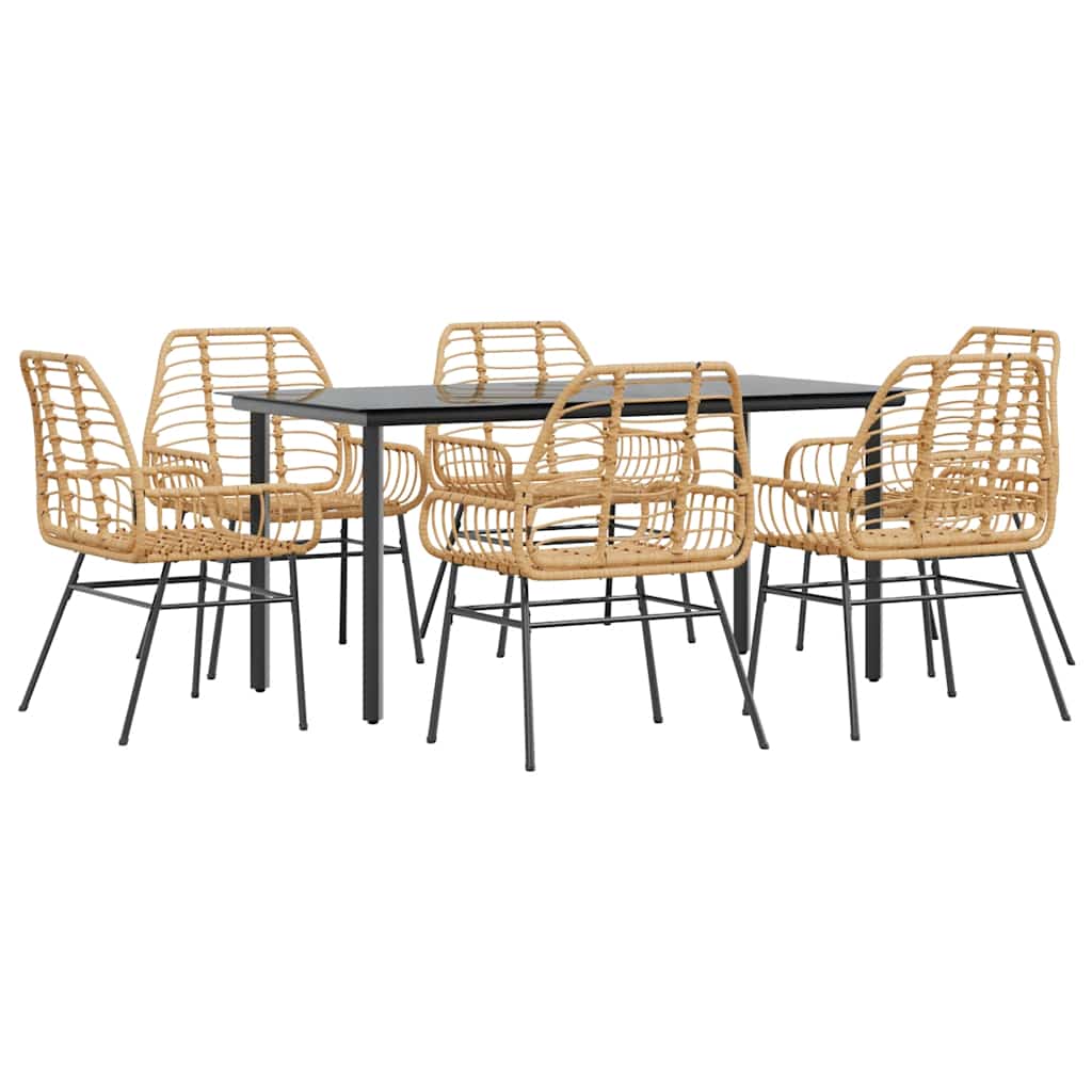 Set de sufragerie de grădină 7 piese sticlă maro din poli ratan GartenMobel Dekor