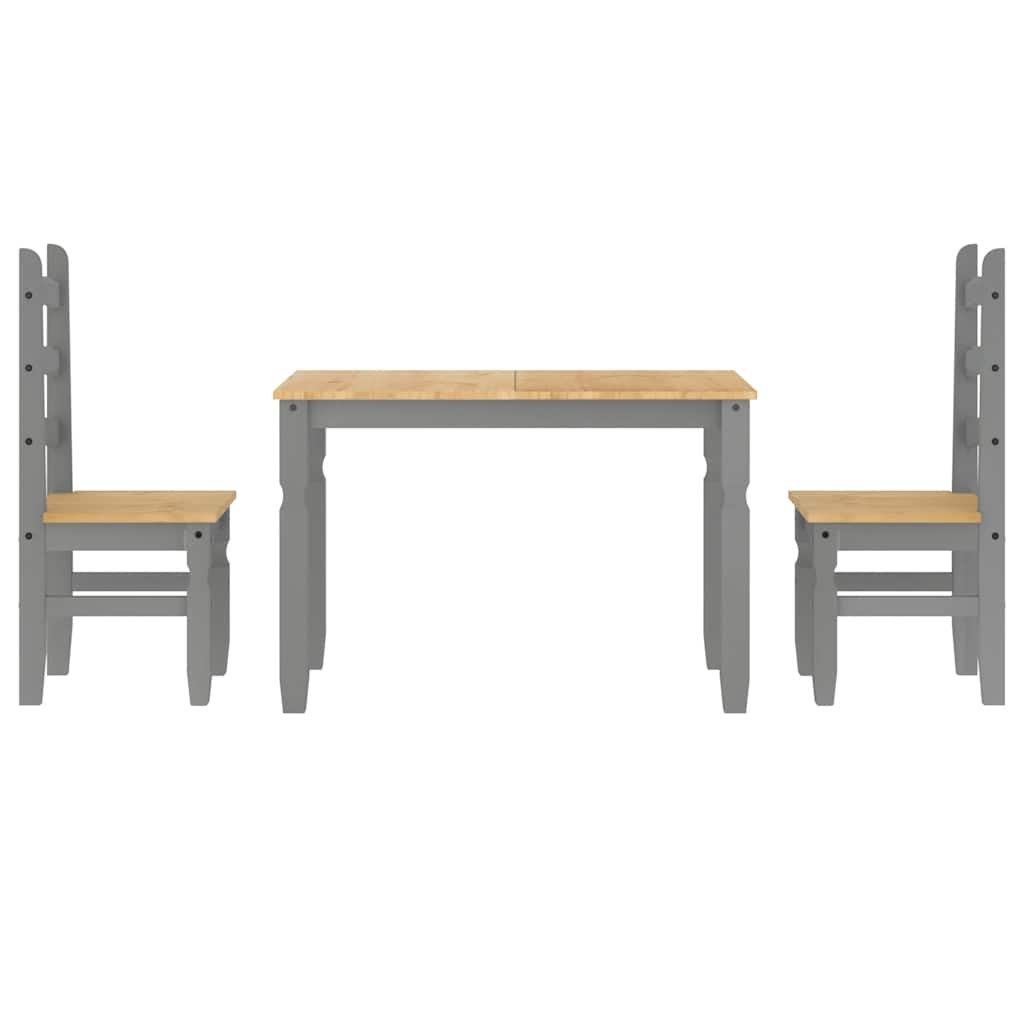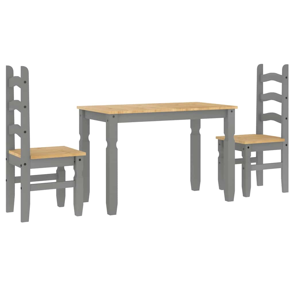 Set de sufragerie din 3 piese Panama din lemn masiv de pin gri GartenMobel Dekor