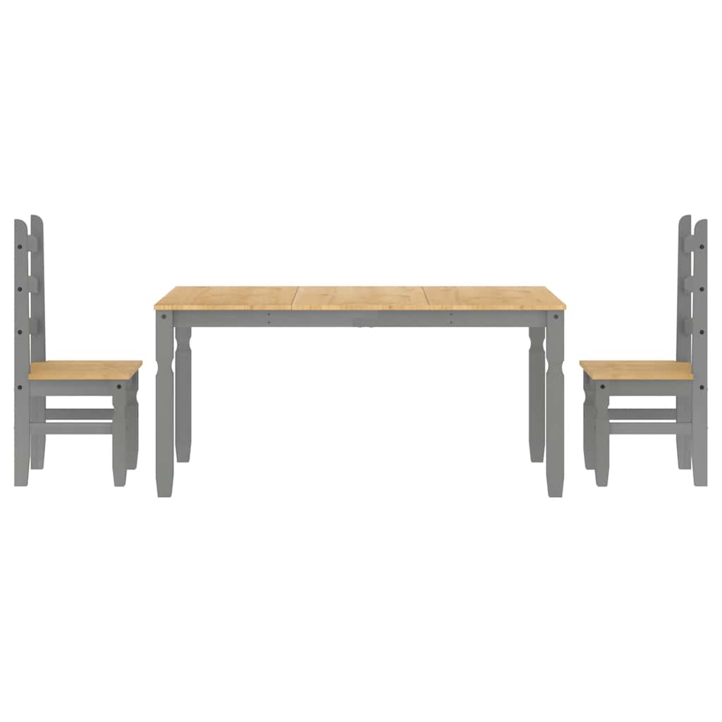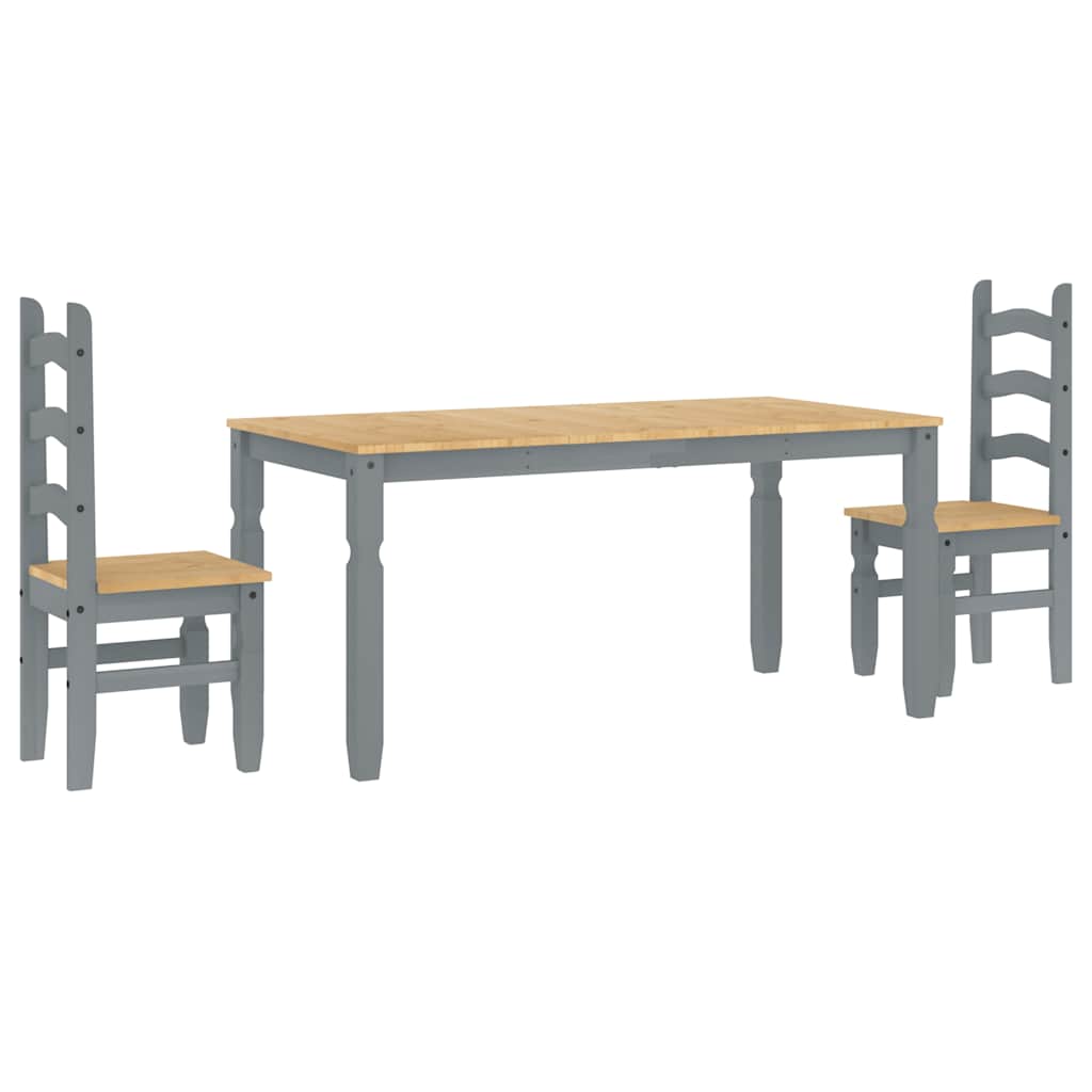 Set de sufragerie din 3 piese Panama din lemn masiv de pin gri GartenMobel Dekor