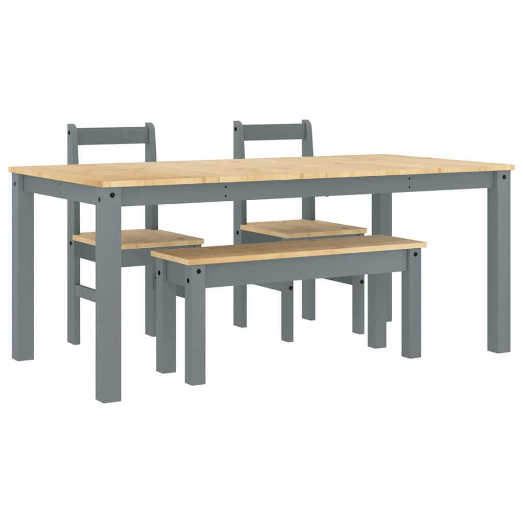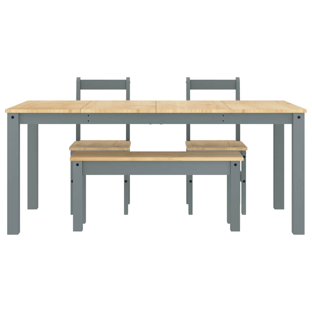 Set de sufragerie din 4 piese Panama din lemn masiv de pin gri GartenMobel Dekor
