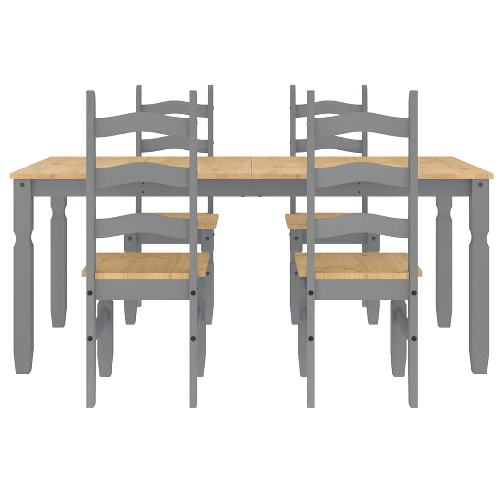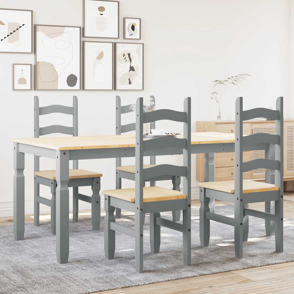 Set de sufragerie din 5 piese Panama din lemn masiv de pin gri GartenMobel Dekor