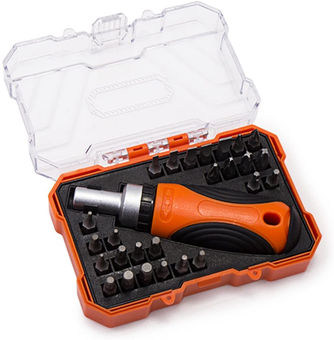 Acest set de surubelnite din 27 de piese ofera o structura cu clichet pentru o lucrare usoara.