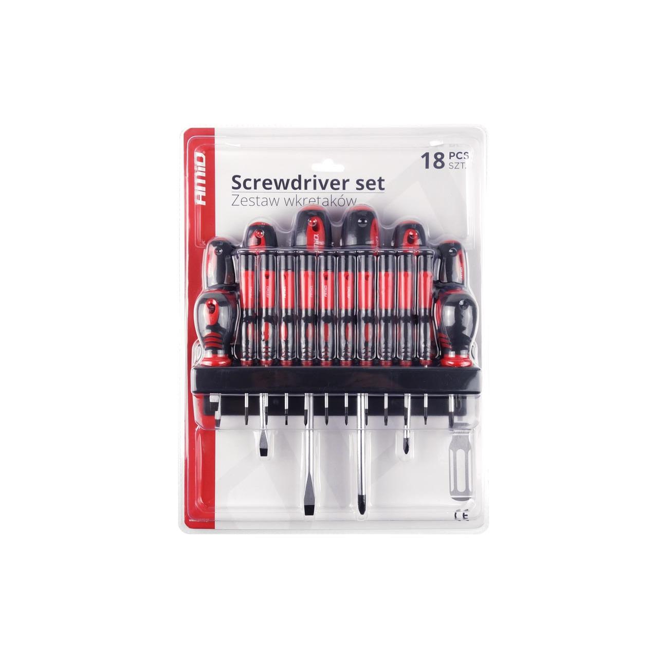 Set de surubelnite cu suport de perete 18 buc fabricate din crom-vanadiu de inalta calitate cu maner antiderapant si varf magnetic.