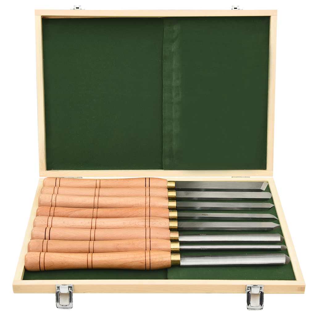 Lamele instrumentelor sunt lame de oțel de mare viteză care depășesc durata lamelor standard de oțel carbon de până la 6 ori. Fiecare lamă are o lungime de aproximativ 168 mm și vă va oferi ani de utilizare fiabilă. Mânerele sculelor sunt confecționate din lemn strunjit frumos și au o lungime de aproximativ 248 mm, ceea ce face ca acesta să fie un set perfect pentru strungari începători sau experimentați.