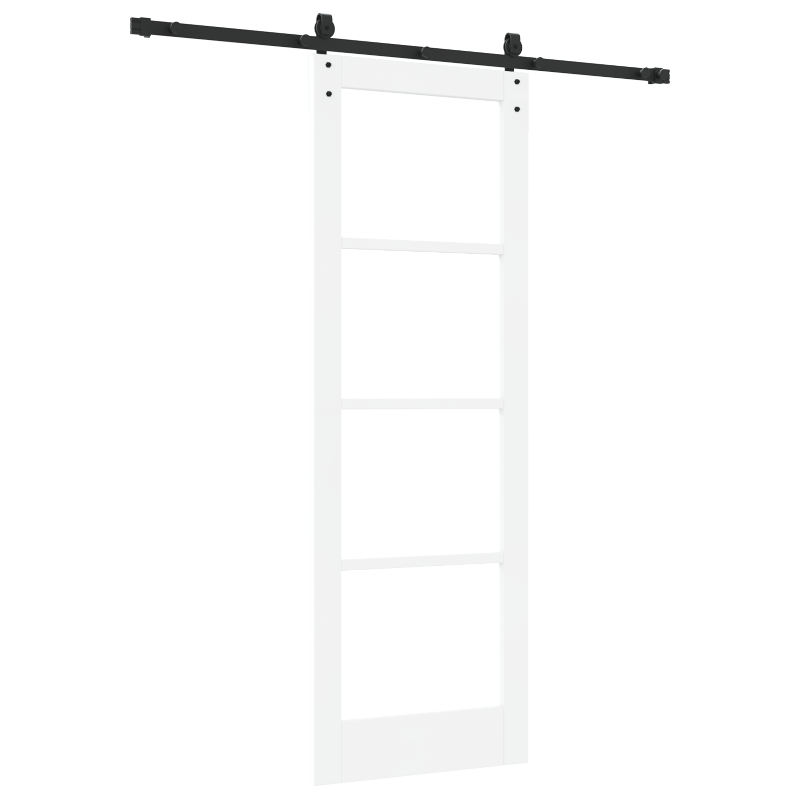 Set de Uși Glisante cu Ferronerie Albă 73.5x211 cm Lemn Solid de Pin, Ușă Interioară cu Sticlă 'ORKDAL'Albă 73.5x211x4 cm GartenMobel Dekor