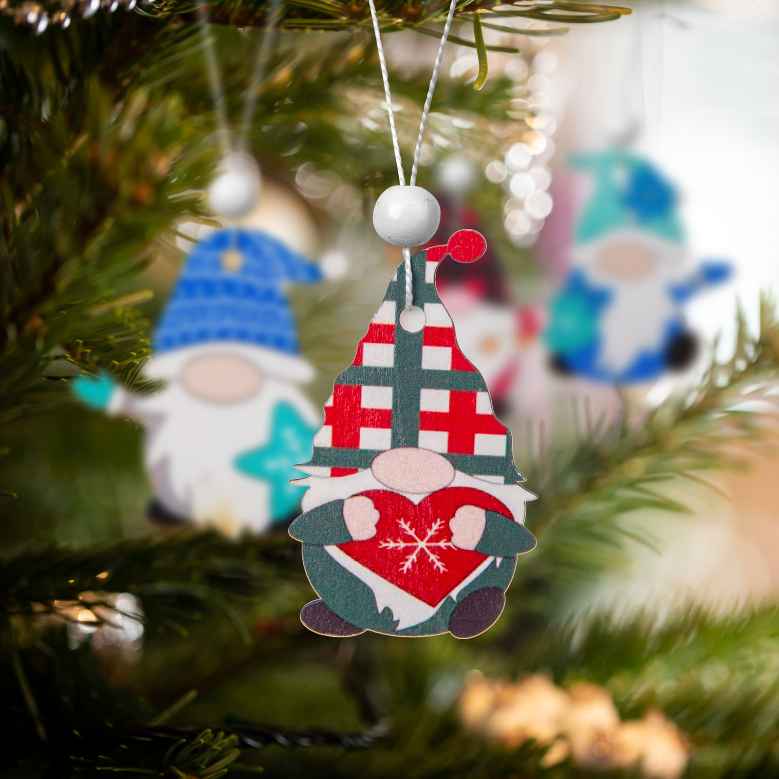 Set de decorațiuni pentru brad din lemn. Creează o atmosferă confortabilă și împodobește-ți bradul de Crăciun cu ornamente din materiale naturale. Pictate, în total 12, figurine spiriduși scandinavi într-un singur pachet.