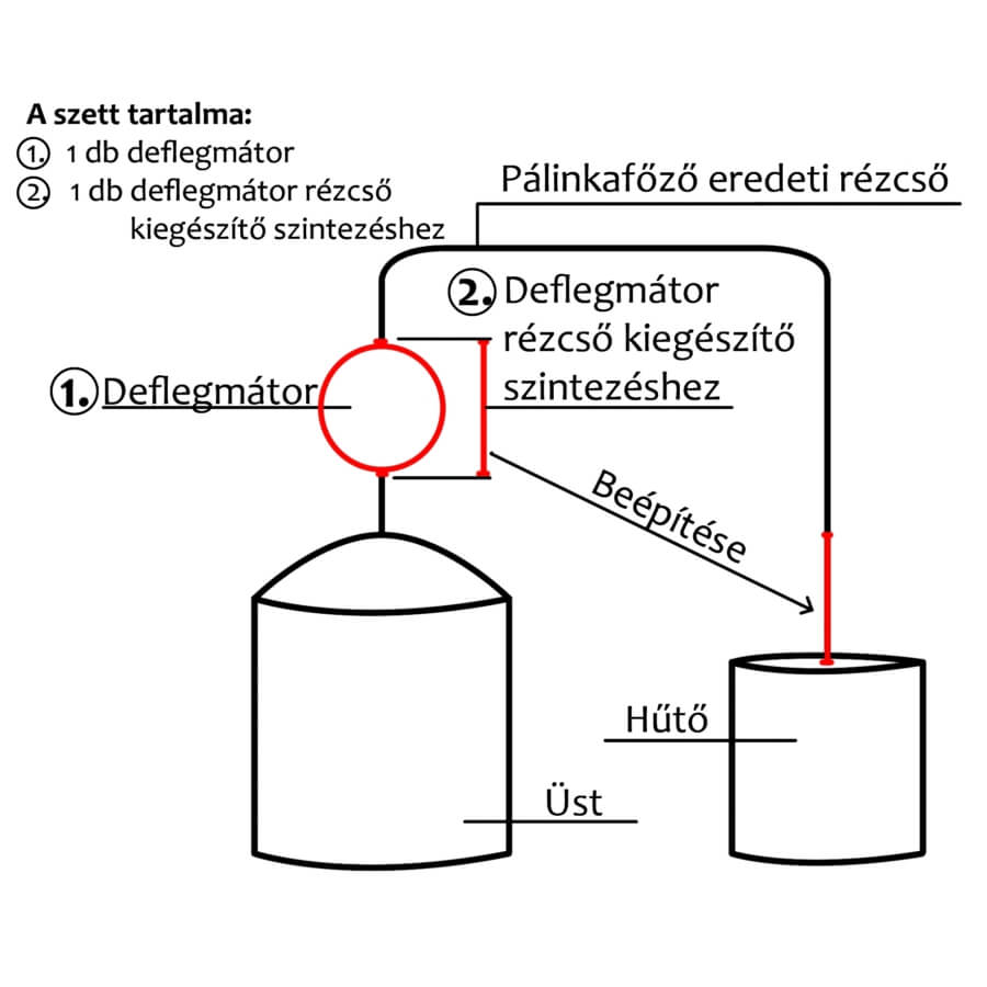 Conexiunea sferei de flobale este de 1 " , și de 1/2" la cele două capete ale tubului prelungitor. Deflegmator: răcește vaporii din cazan.