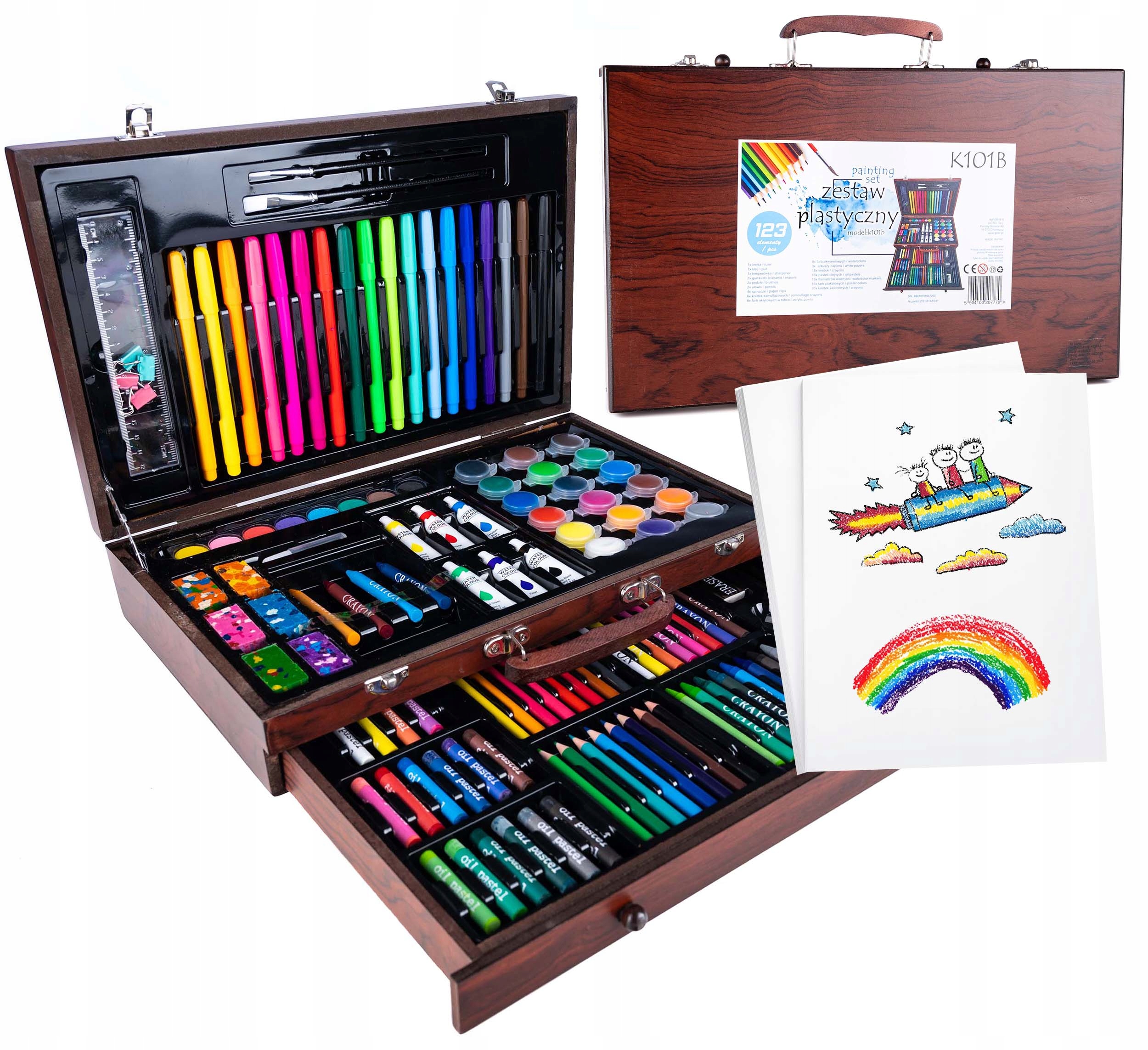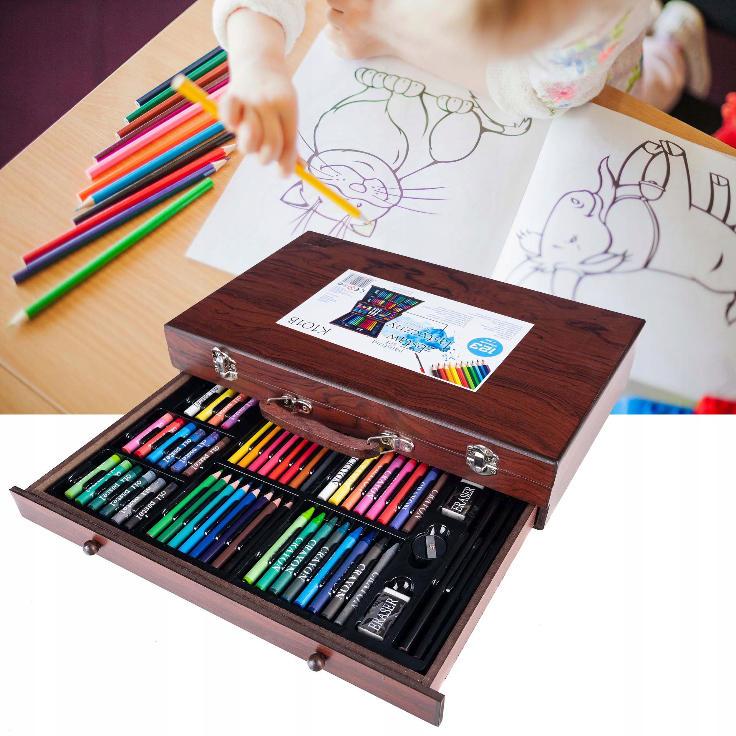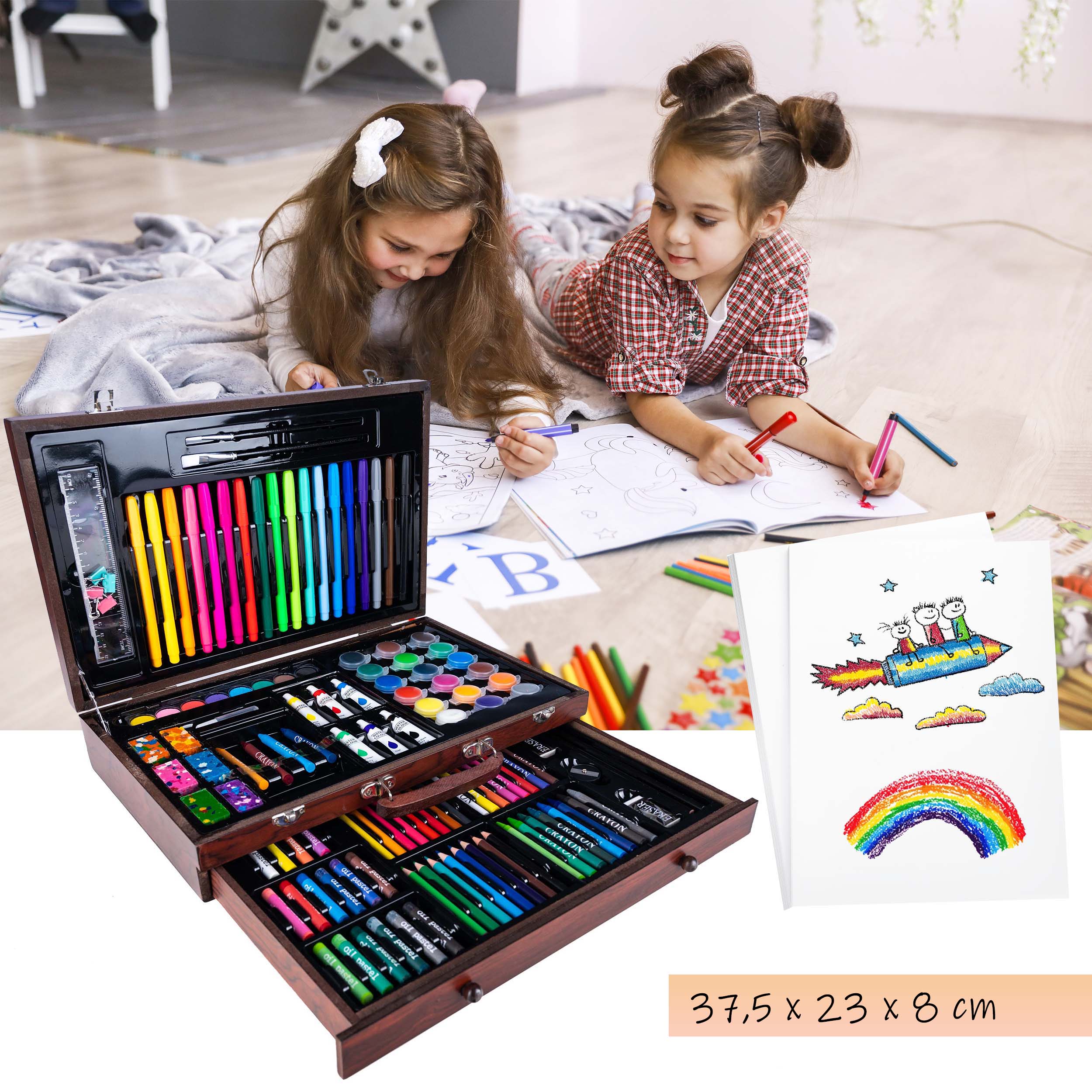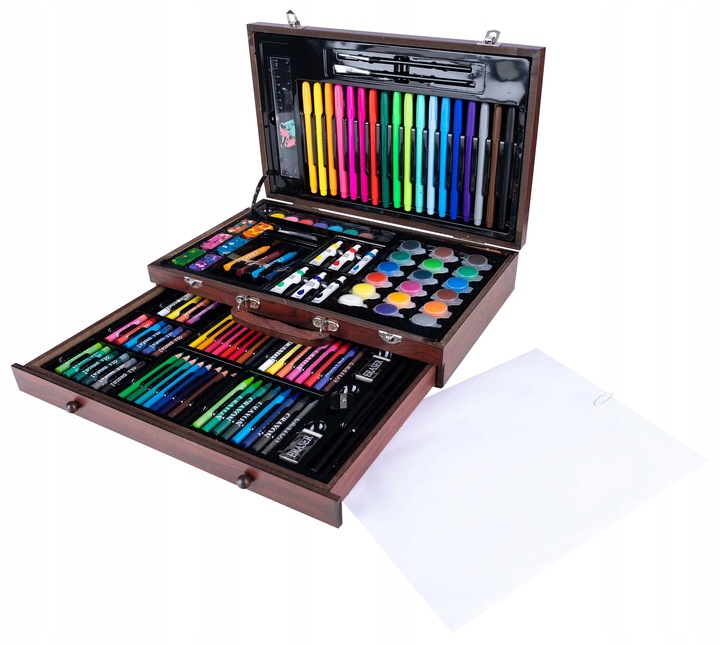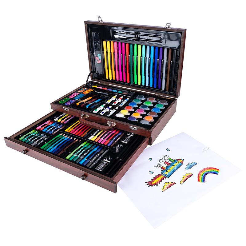Set desen si pictura XL 130 piese cu valiza din lemn, 37x23x8 cm, multicolor Household NewTrend