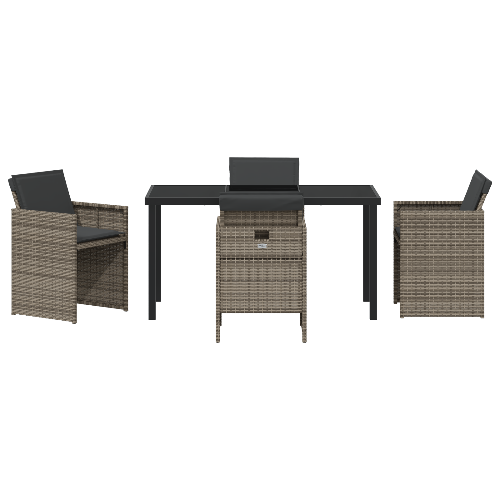 Acest set de dining pentru grădină îmbină stilul cu confortul, perfect pentru relaxare pe balconul tău sau în grădină. Ratanul poli gri elegant și pernele gri închis se îmbină pentru a crea un loc care arată bine oriunde afară, permițându-ți să te bucuri de mese sau doar să te relaxezi cu prietenii și familia cu stil.