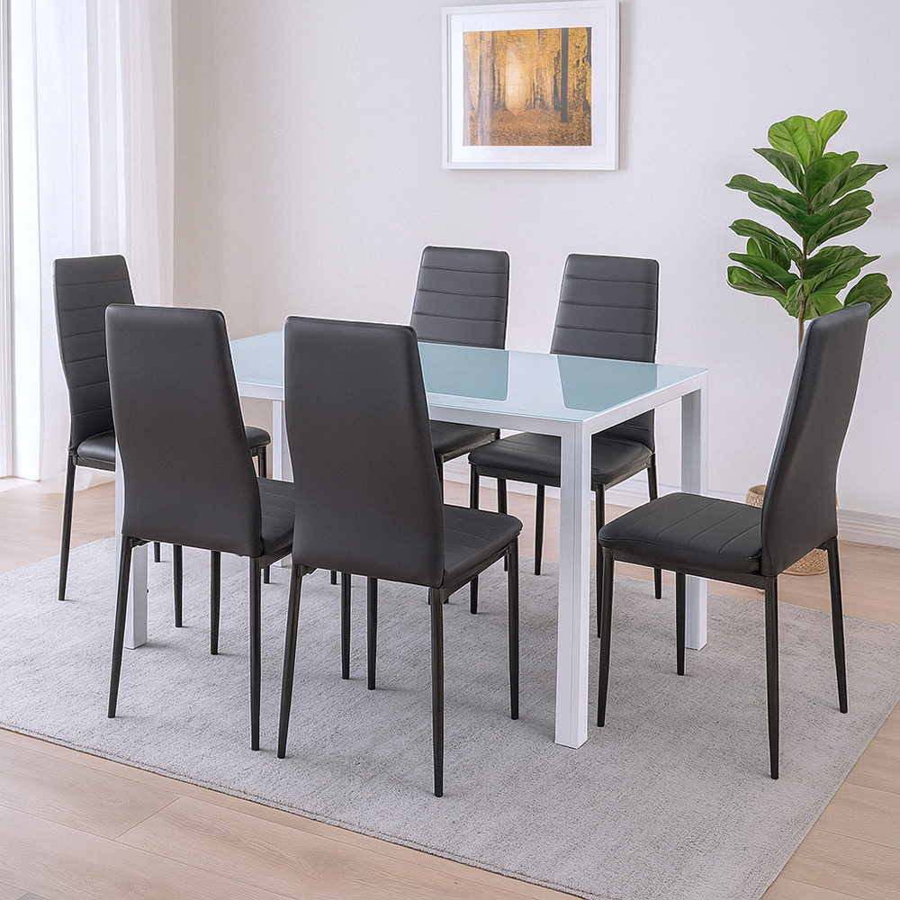 Set dining Leziter Liana 6+1, masă sticlă securizată, 6 scaune negre