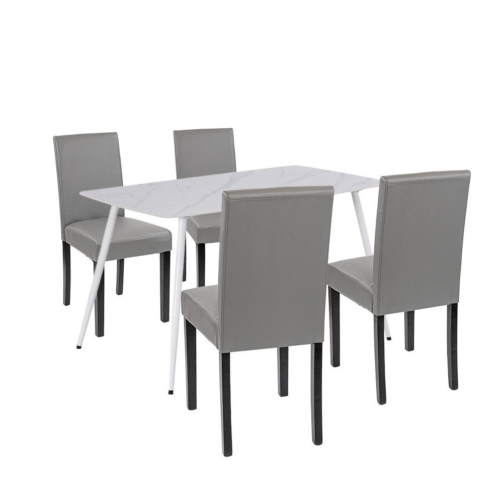 Set dining Leziter Megan 4+1 alb-gri – confort și eleganță zi de zi