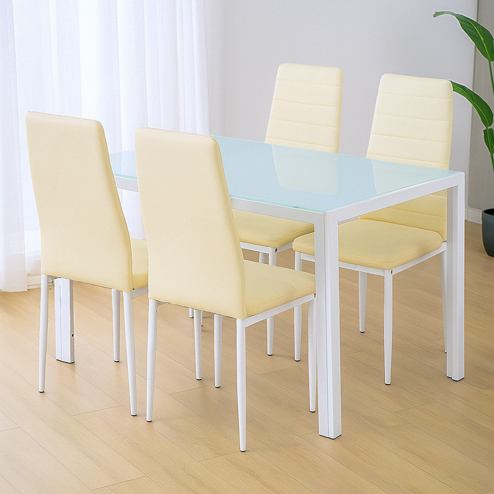 Set dining Leziter Portland 4+1 bej cu masă din sticlă securizată și 4 scaune