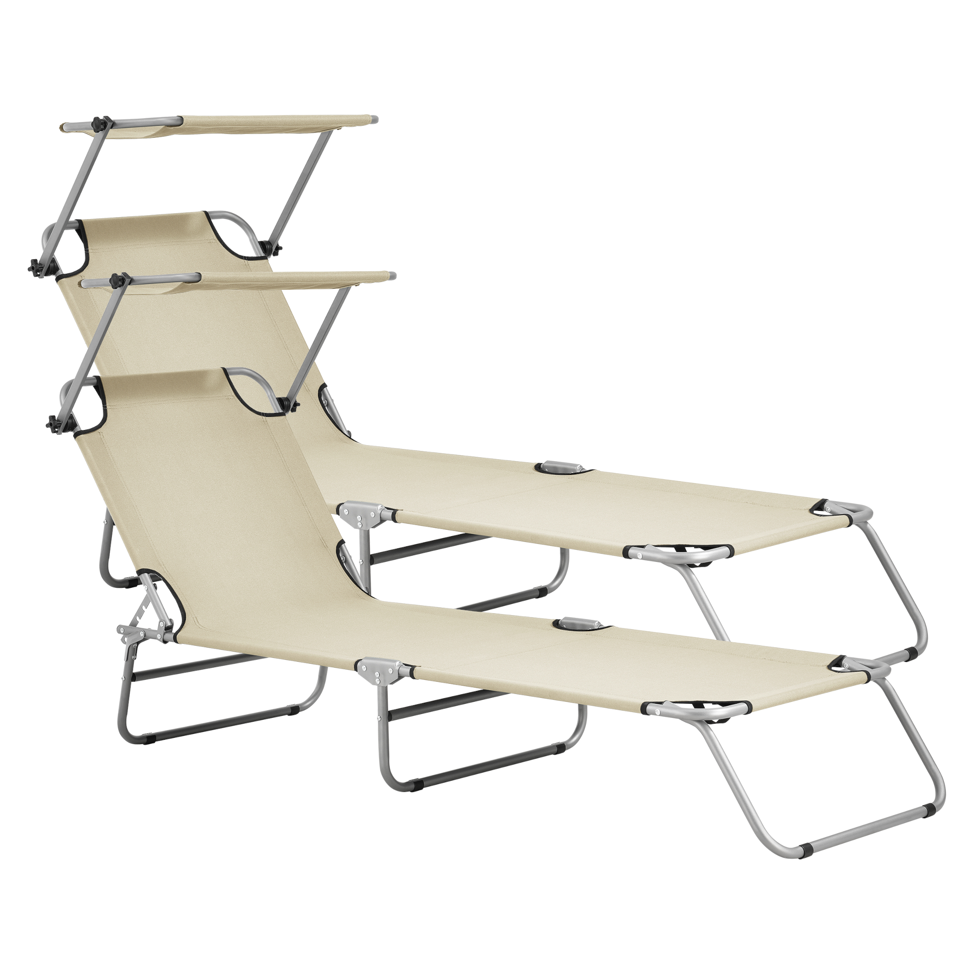 Set doua bucati sezlong pat ArgozeloB cu spatar reglabil si parasolar bej [casa.pro] HausGarden Leisure