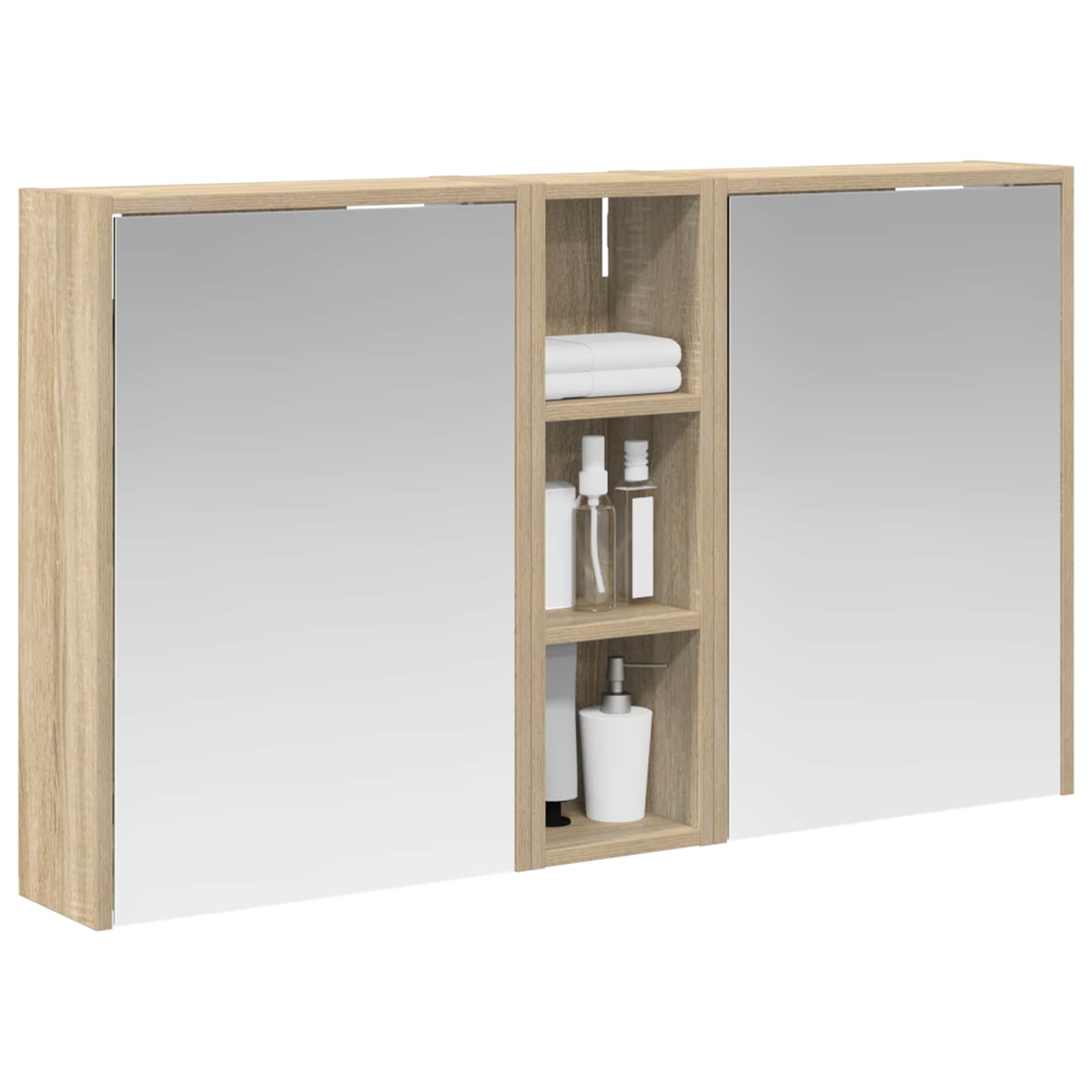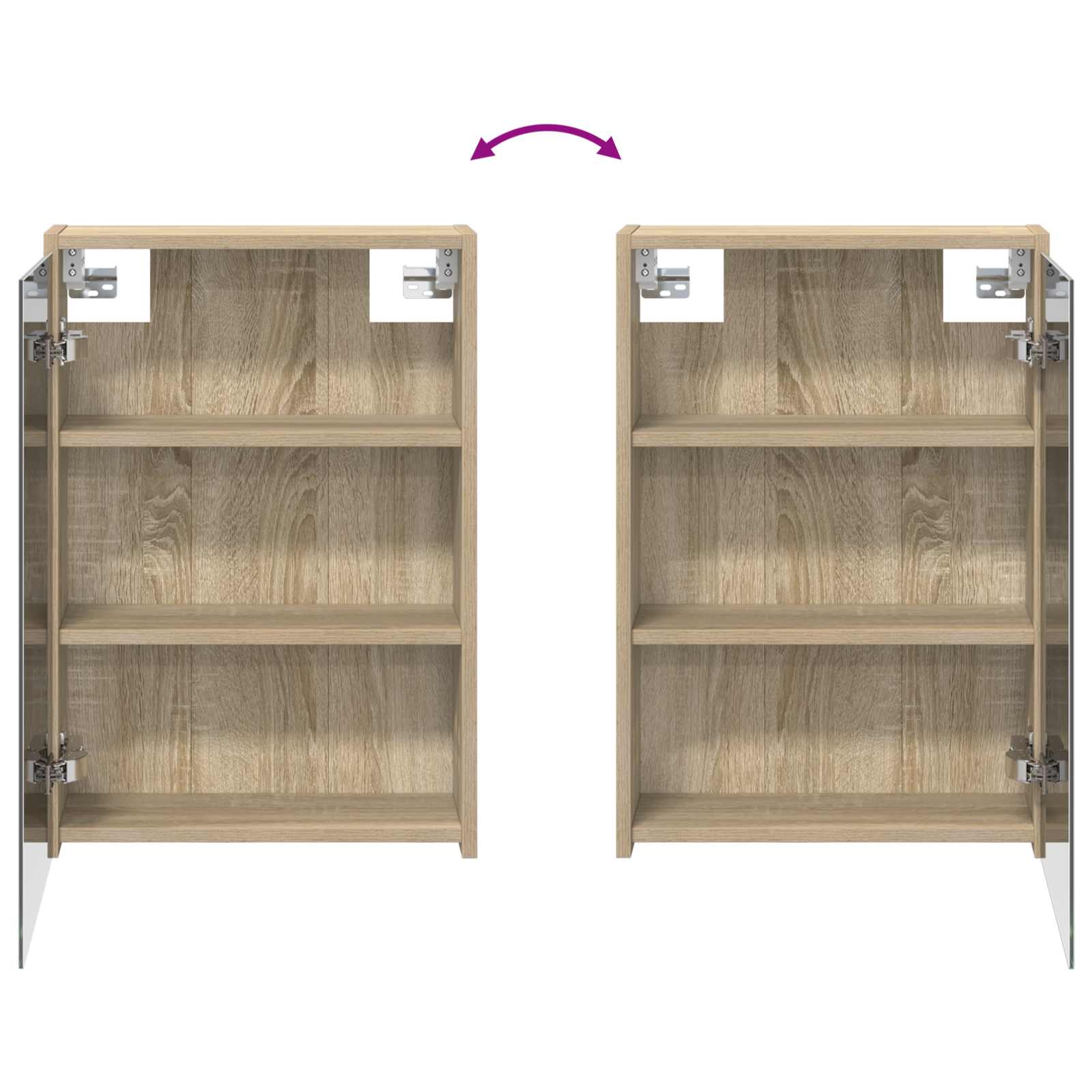 - Uși dual-funcționale: Ușile cu balamale din sticlă se deschid ușor și aduc o notă elegantă, dezvăluind un interior spațios pentru toate produsele tale de îngrijire, ajutându-te să te organizezi mai bine.