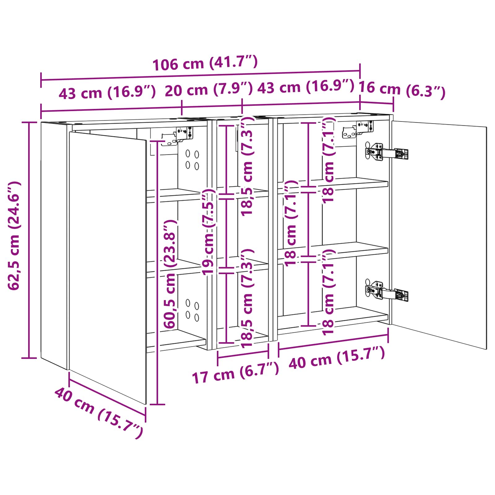 - 2 x Cabinet Oglindă pentru Baie: 43 x 16 x 62 cm(LxWxH)