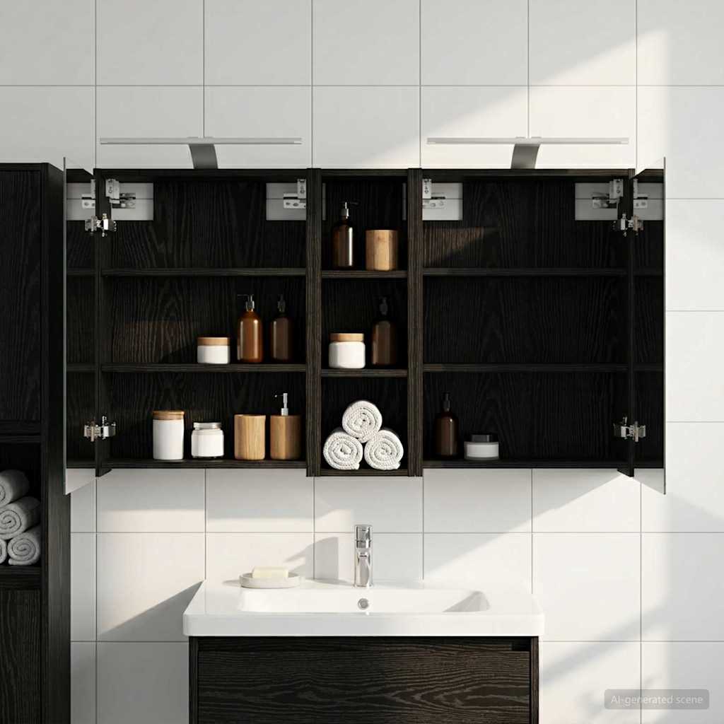 • Iluminare inovatoare: Cabinetul are benzi LED care oferă o lumină perfectă pentru grooming și crează o ambianță plăcută. Luminile se conectează ușor prin USB, oferind nu doar utilitate, ci și un look stylish.