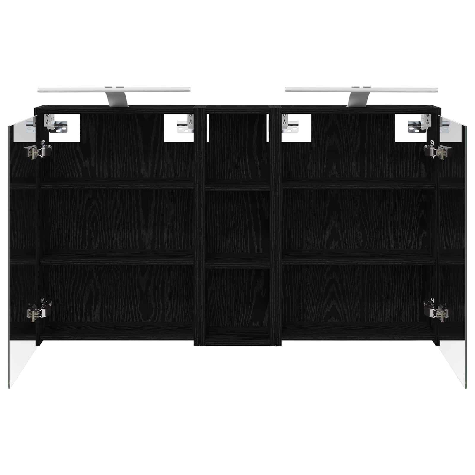• Uși dual-funcționale: Ușile cu balamale din sticlă se deschid ușor și aduc o notă elegantă, dezvăluind un interior spațios pentru toate produsele tale de îngrijire, ajutându-te să te organizezi mai bine.