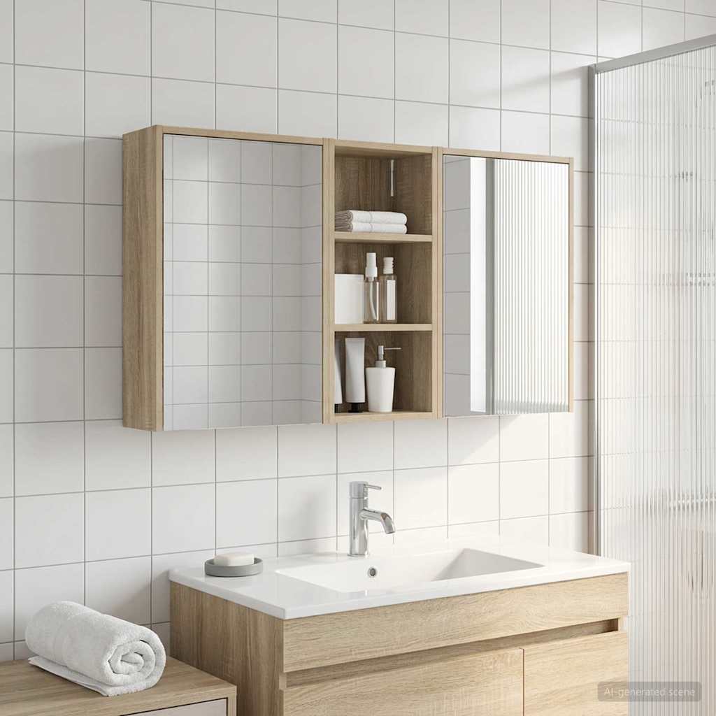 Setul ăsta de cabine de baie aduce o soluție elegantă și practică pentru băile geamănice. Cu lemn prelucrat și linii curate, cabinetul are o oglindă bidirecțională care face spațiul să pară mai mare și adaugă un pic de intrigă. E perfect pentru proprietari și designeri care caută o stocare eficientă, dar și un design minimalist care dă o notă de fresh oricărei băi, cu iluminat LED care îmbină funcția cu stilul.