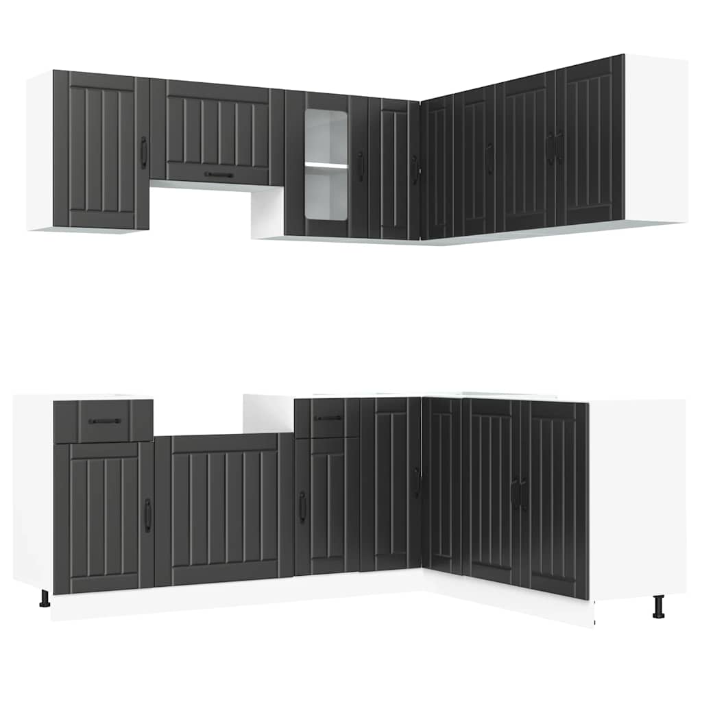 Set dulap de bucătărie 11 piese „Lucca” lemn negru prelucrat GartenMobel Dekor
