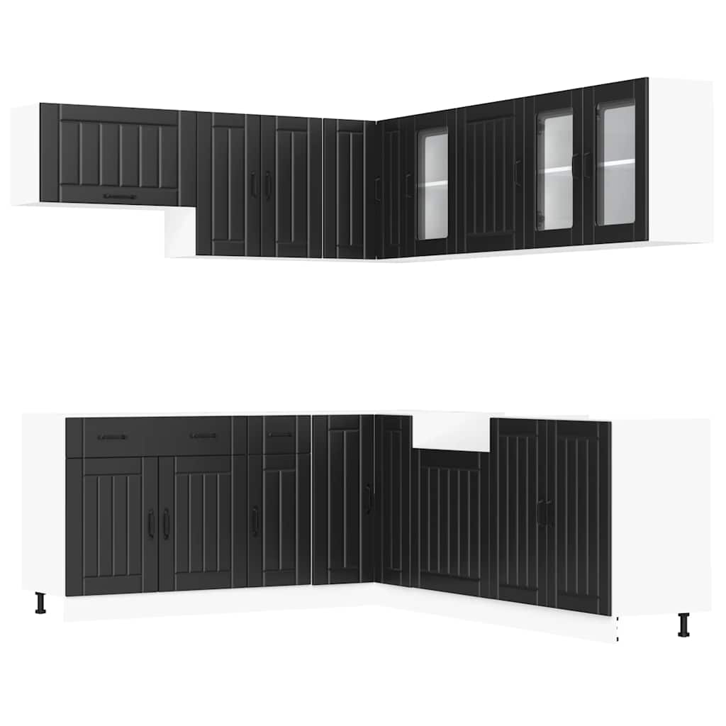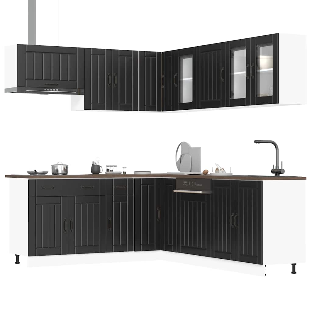 Set dulap de bucătărie 11 piese „Lucca” lemn negru prelucrat GartenMobel Dekor