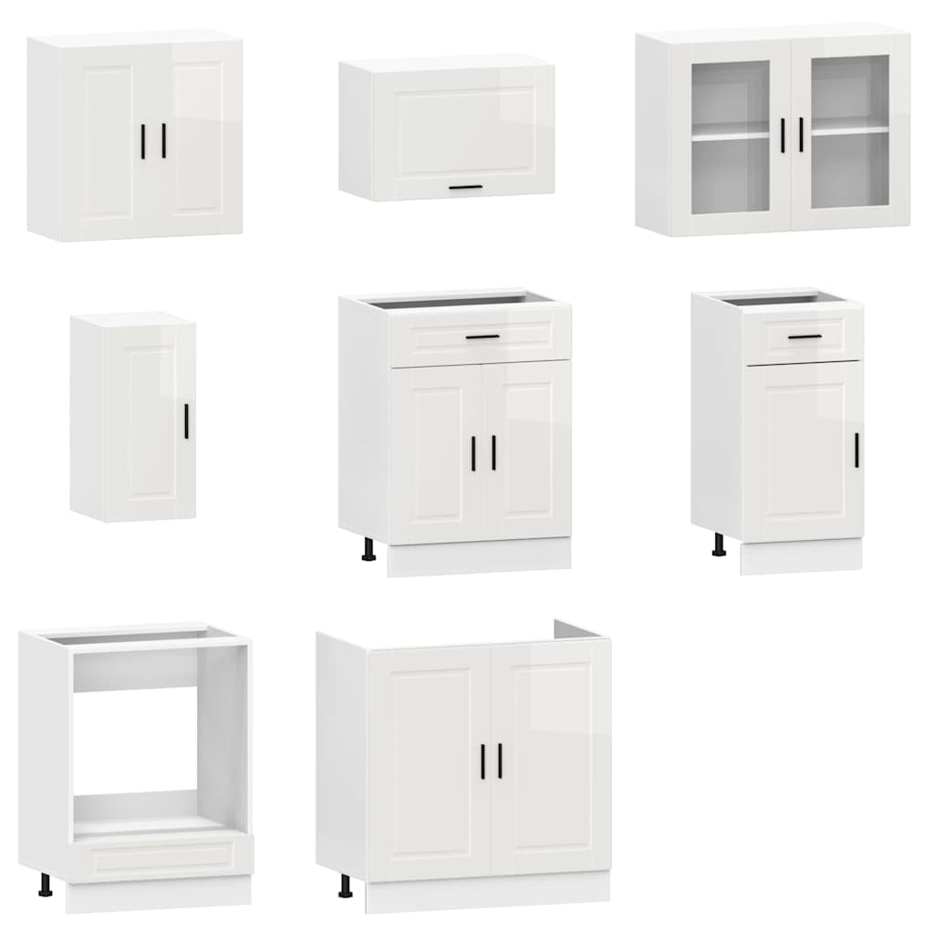 Set dulap de bucătărie 8 piese „Kalmar” alb lucios Lemn GartenMobel Dekor