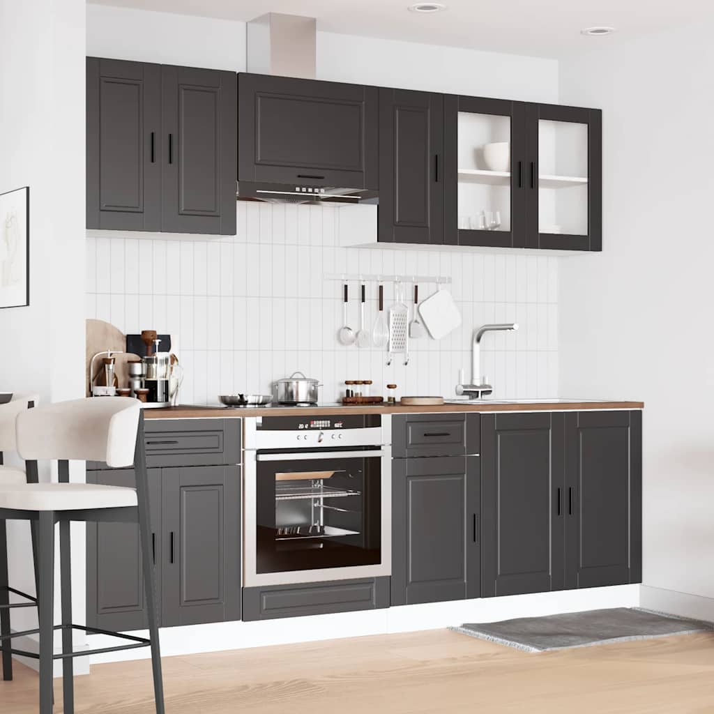 Set dulap de bucătărie 8 piese „Kalmar” lemn negru prelucrat GartenMobel Dekor
