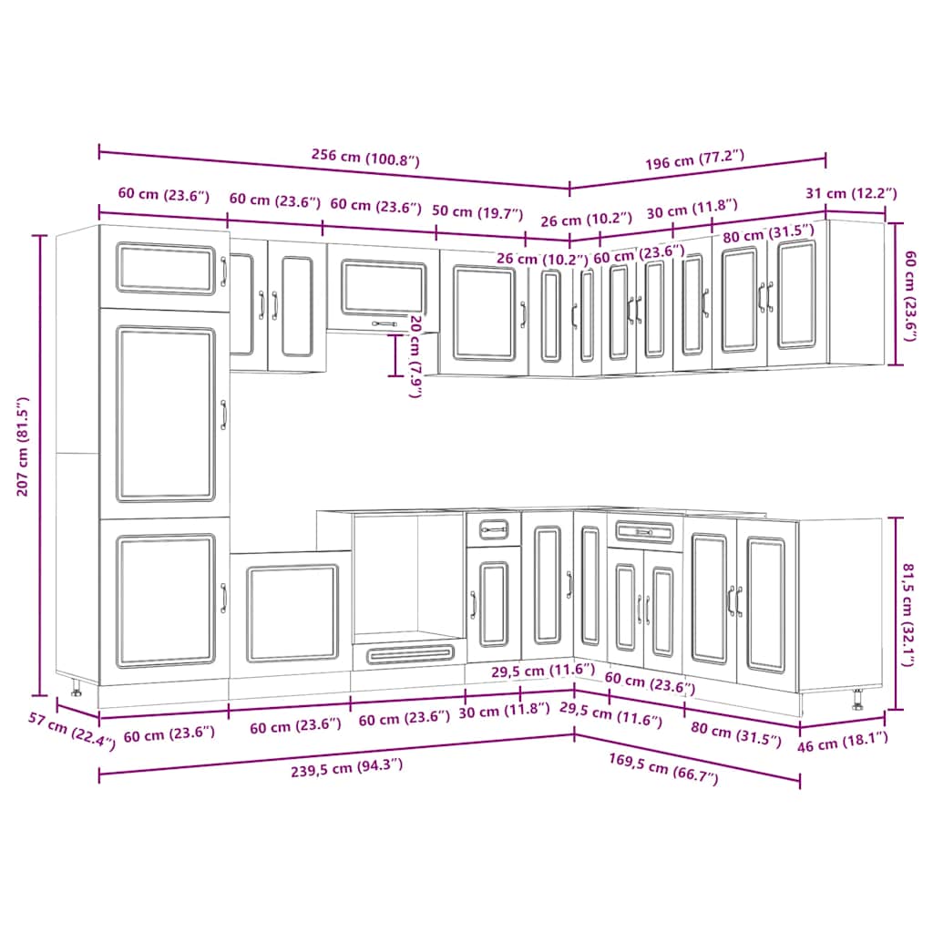 Set dulap de bucătărie din 14 piese „Kalmar” lemn stejar Sonoma GartenMobel Dekor