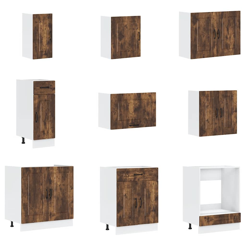 Set dulap de bucătărie din 14 piese „Kalmar” stejar afumat Lemn GartenMobel Dekor